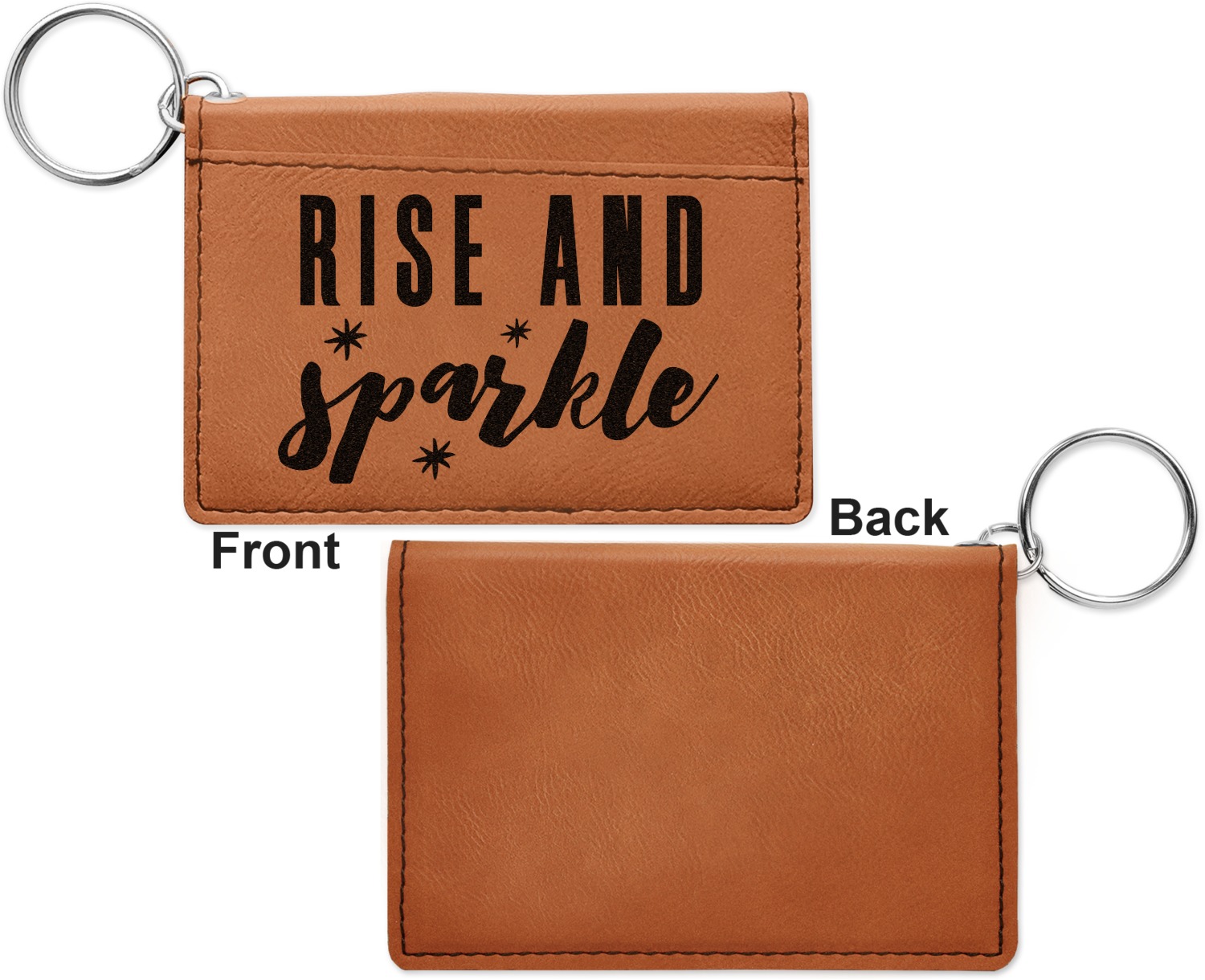 Interested in more leatherette or leather accessories? Check out our Apparel and Accessories department, where you can also personalize our phone wallets and money clips. If you're looking for customizable keychains to add to your keyring card holder, have a look at our round, heart, and diamond keychains. These keychains and more can be found in our Car and Automotive category.