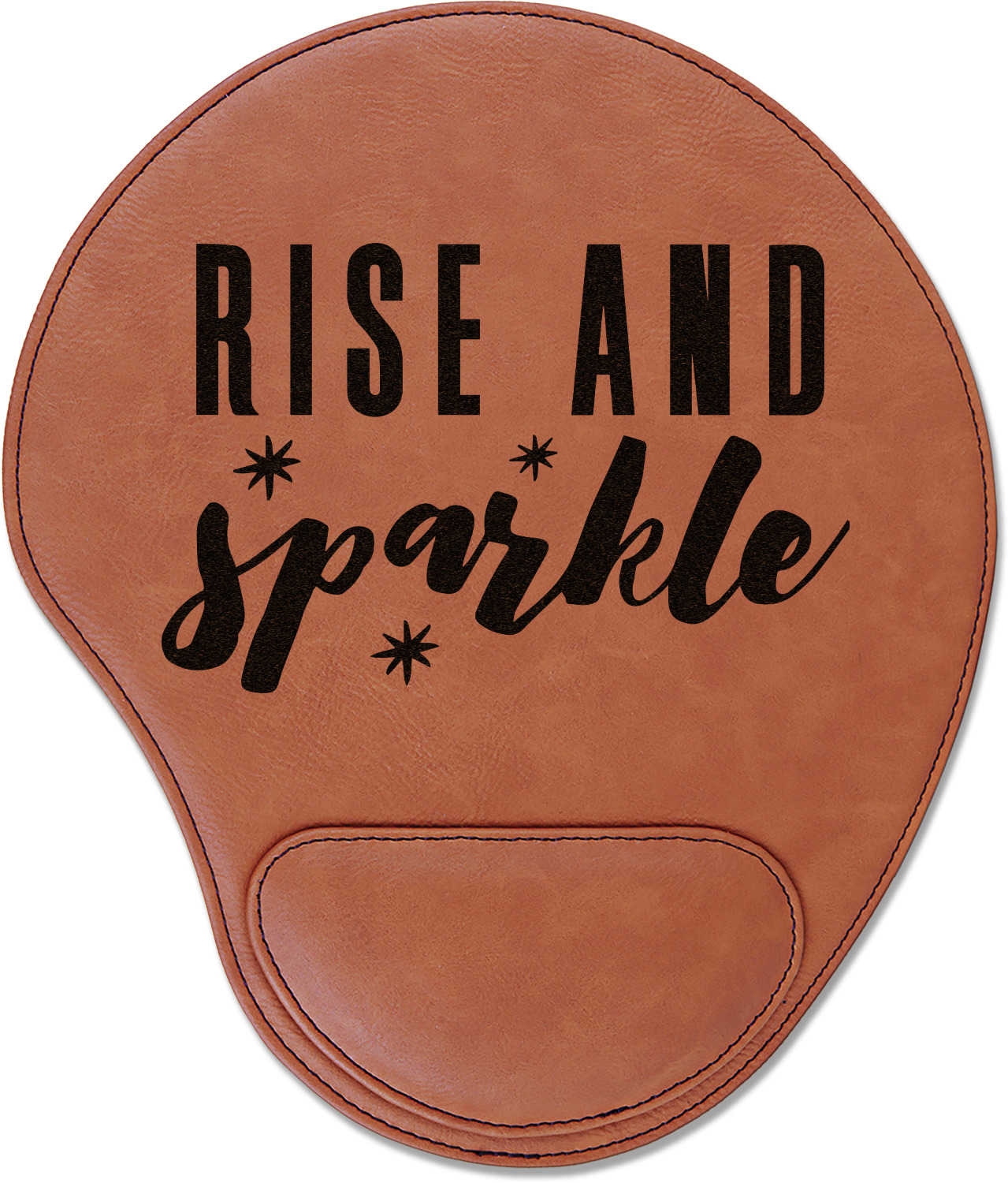 In a rounded shape, this mouse pad is made of a luxurious, cognac-colored leatherette. The nature of this material allows your mouse to glide smoothly across its surface. Strong stitching lines the edges to guarantee stability and strength. As added support for tired wrists, your personalized mouse pad features a supportive wrist rest at its bottom. This model measures at 10.25" x 9", while its wrist pad is approximately 5" x 2.75", with a thickness of 0.75". Your personalized design is laser engraved into the front face of this mouse pad.