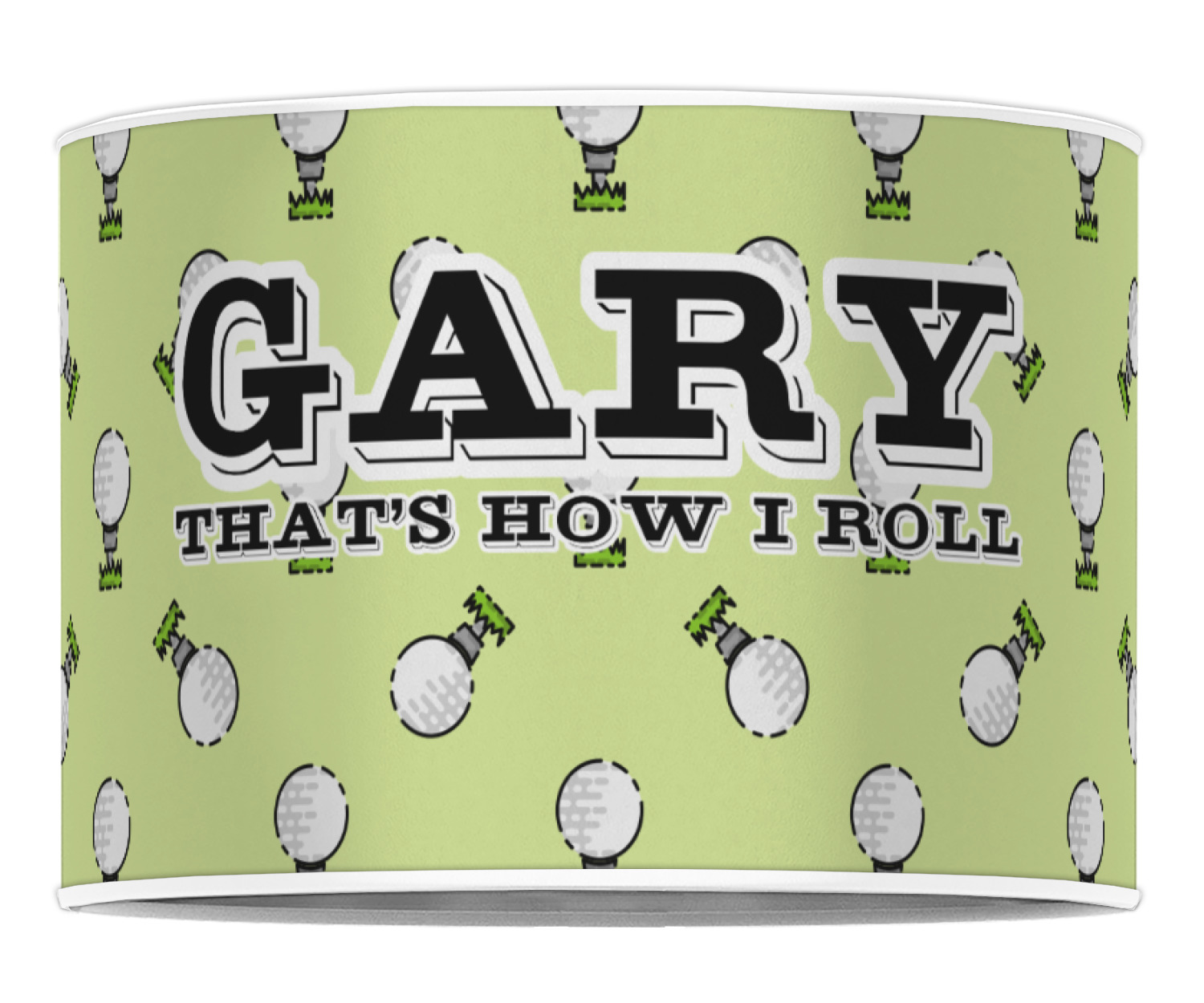 This design has a fun background that has illustrations of golf balls on a tee symmetrically placed to make a fun pattern. The main colors are a light lime green with a little dark green and white. The text is easily changed to whatever you like. The default has a place for a name as well as the phrase "that's how I roll" to get a good laugh out of your buddies. This is a fun design to use on your golfing gear.