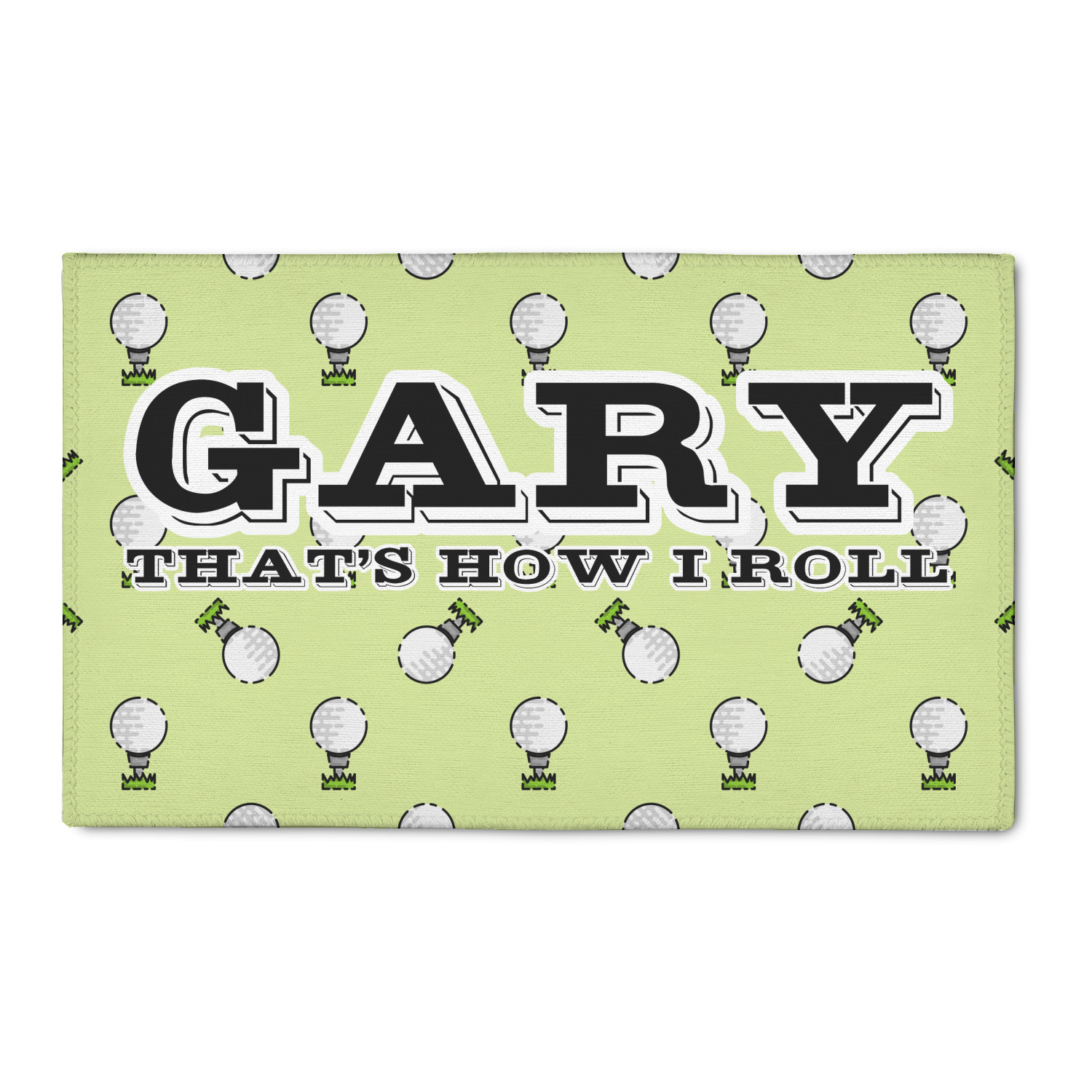 This design has a fun background that has illustrations of golf balls on a tee symmetrically placed to make a fun pattern. The main colors are a light lime green with a little dark green and white. The text is easily changed to whatever you like. The default has a place for a name as well as the phrase "that's how I roll" to get a good laugh out of your buddies. This is a fun design to use on your golfing gear.