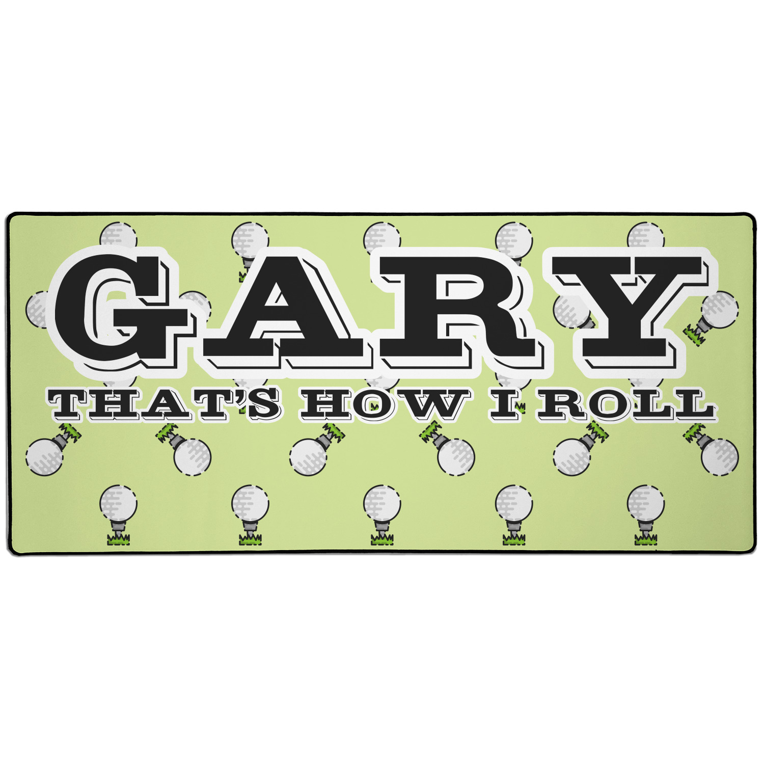 This design has a fun background that has illustrations of golf balls on a tee symmetrically placed to make a fun pattern. The main colors are a light lime green with a little dark green and white. The text is easily changed to whatever you like. The default has a place for a name as well as the phrase "that's how I roll" to get a good laugh out of your buddies. This is a fun design to use on your golfing gear.
