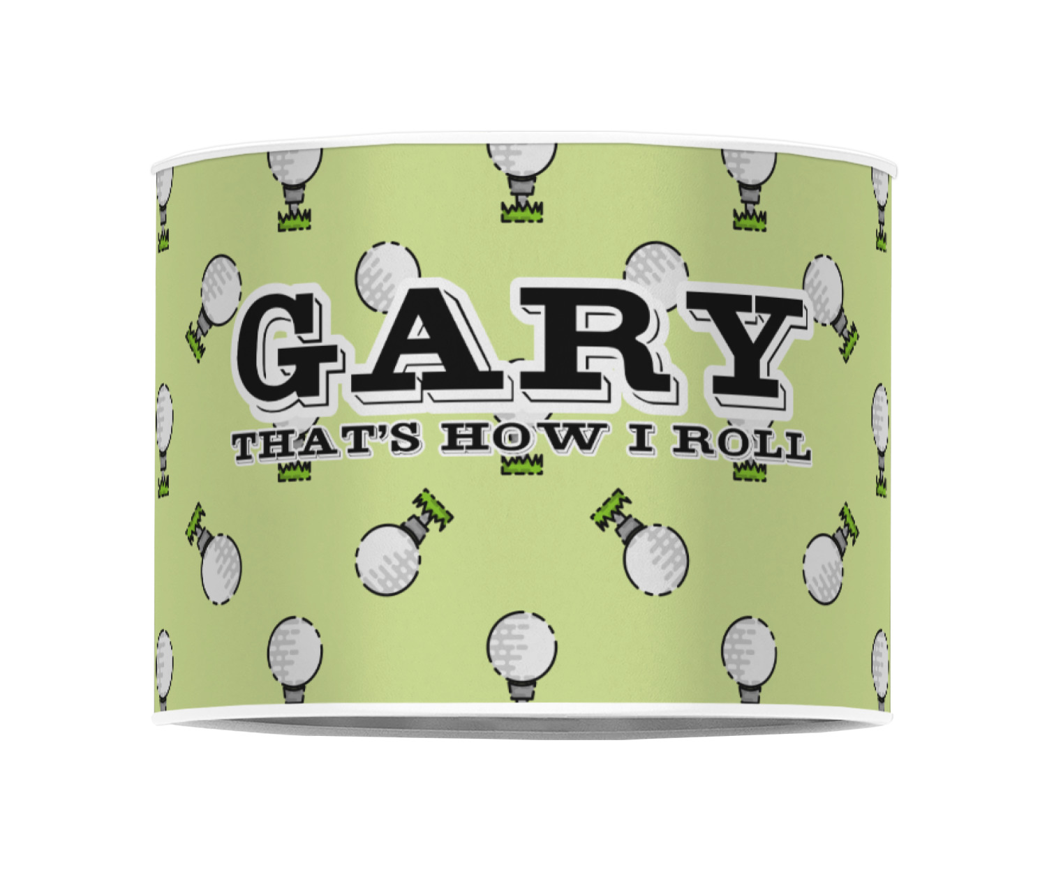 This design has a fun background that has illustrations of golf balls on a tee symmetrically placed to make a fun pattern. The main colors are a light lime green with a little dark green and white. The text is easily changed to whatever you like. The default has a place for a name as well as the phrase "that's how I roll" to get a good laugh out of your buddies. This is a fun design to use on your golfing gear.