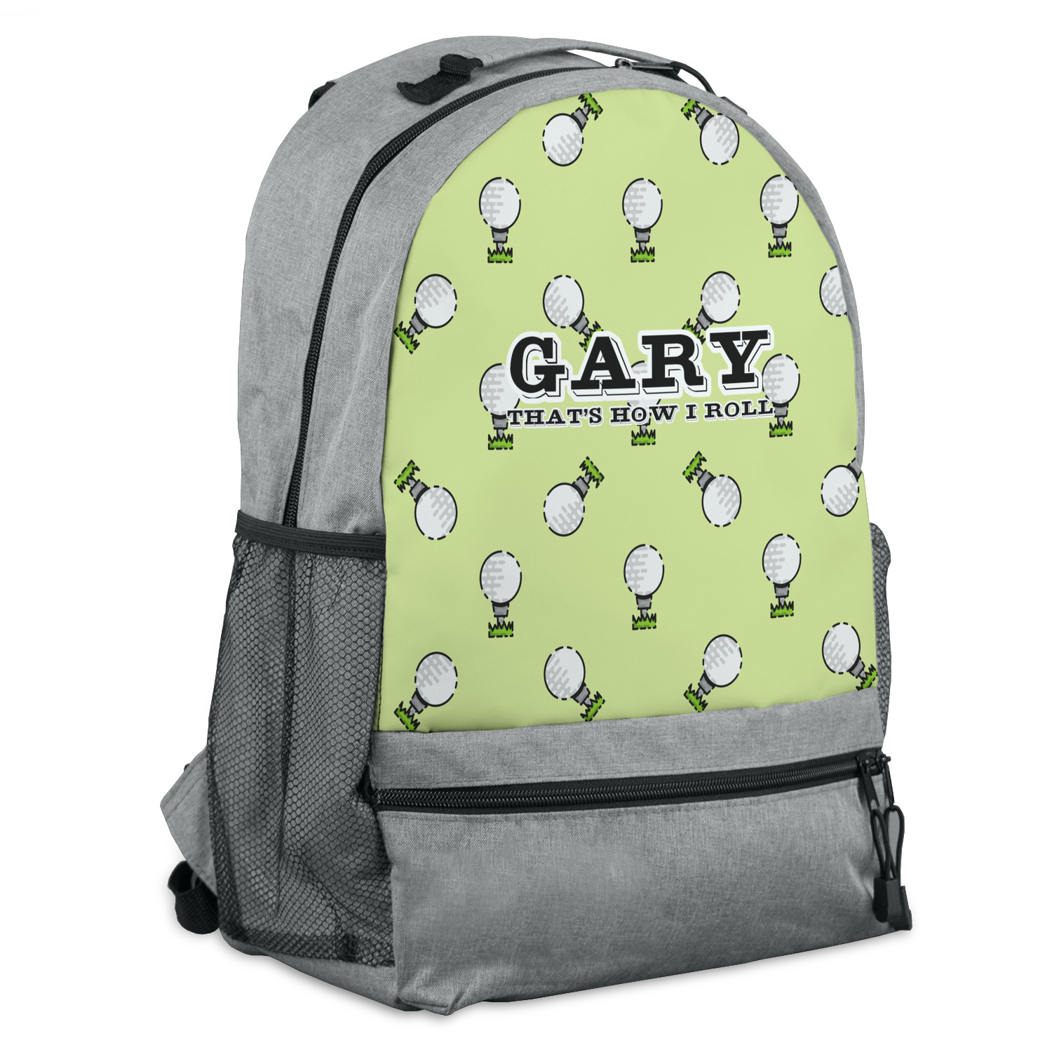 This design has a fun background that has illustrations of golf balls on a tee symmetrically placed to make a fun pattern. The main colors are a light lime green with a little dark green and white. The text is easily changed to whatever you like. The default has a place for a name as well as the phrase "that's how I roll" to get a good laugh out of your buddies. This is a fun design to use on your golfing gear.