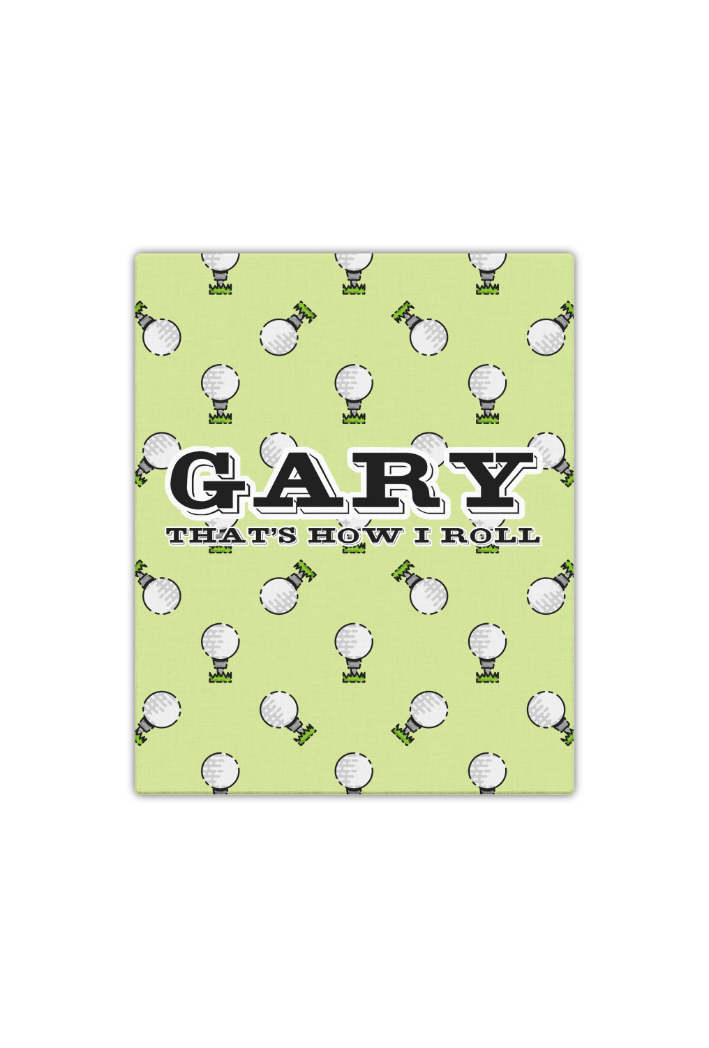 This design has a fun background that has illustrations of golf balls on a tee symmetrically placed to make a fun pattern. The main colors are a light lime green with a little dark green and white. The text is easily changed to whatever you like. The default has a place for a name as well as the phrase "that's how I roll" to get a good laugh out of your buddies. This is a fun design to use on your golfing gear.