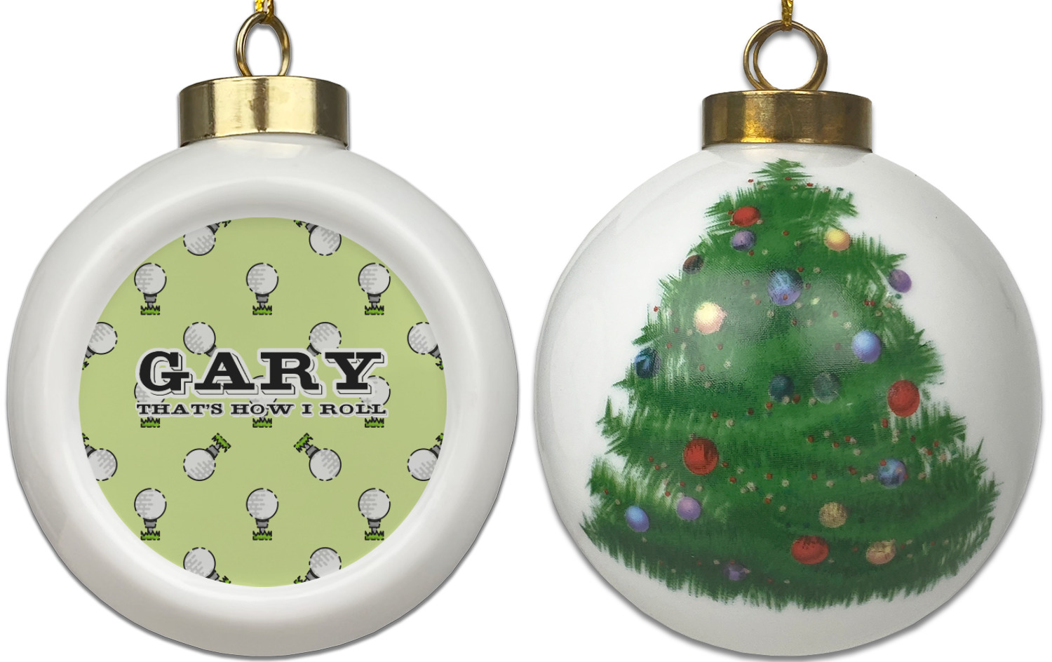Our Christmas ornaments are a unique ceramic ball shape with a twist as it has a flat face to display your custom design! Select from one of our two design types - Christmas Tree or Poinsettia Garland - to adorn the curved back of your personal design. Each ornament measures 3H x 2.5W x 2D accompanied with a gold string accent for finishing touches to hang on your beautiful Christmas tree!