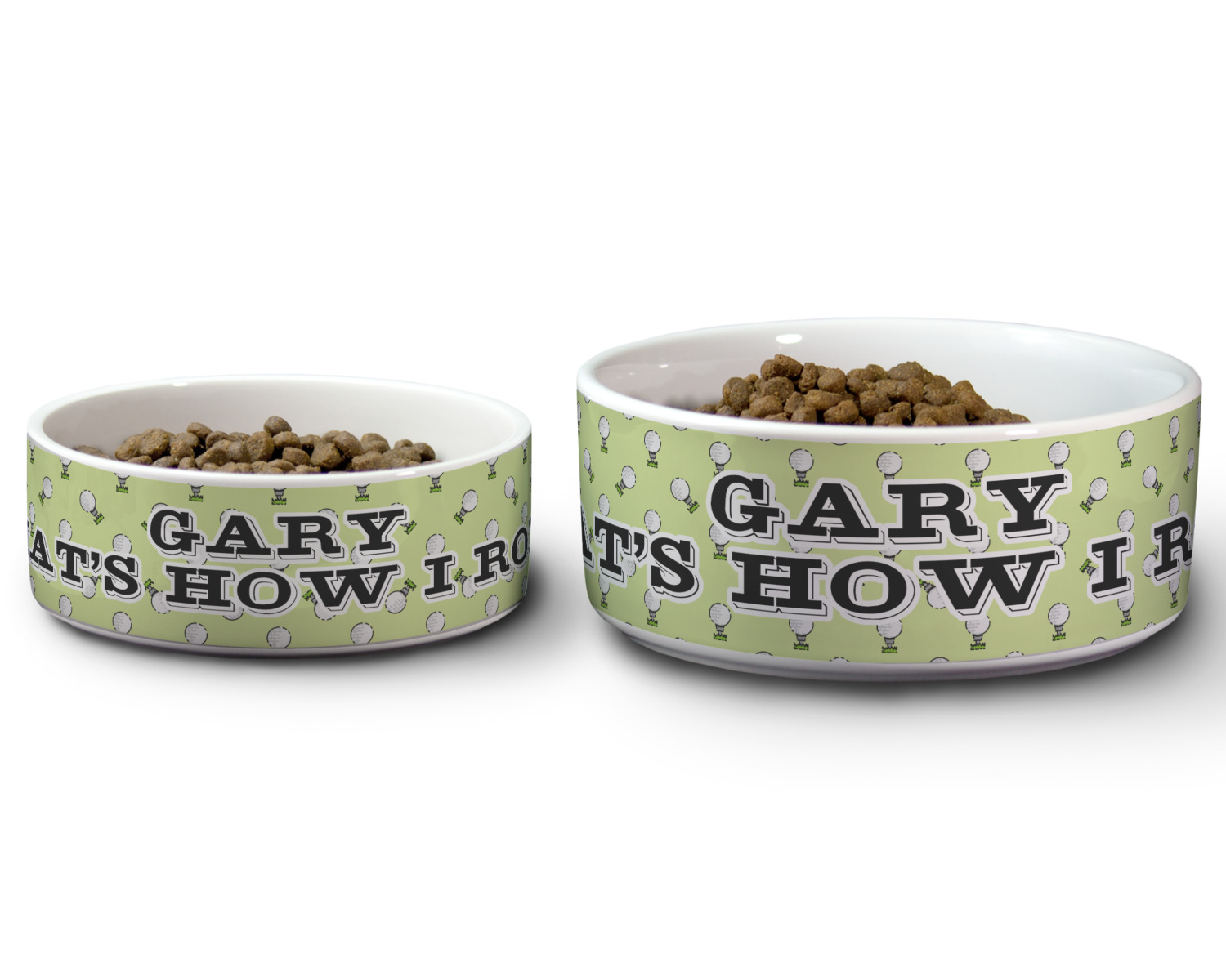 Our customized, ceramic dog bowls allow you to fashion a durable, yet expressive gift for your pet. These bowls are fashionably versatile; they suit both cats and dogs and can hold either food or water. Add your pet's name or favorite color to the design, and spruce up his/her eating area with one or two personalized pet bowls!