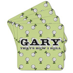 This design has a fun background that has illustrations of golf balls on a tee symmetrically placed to make a fun pattern. The main colors are a light lime green with a little dark green and white. The text is easily changed to whatever you like. The default has a place for a name as well as the phrase "that's how I roll" to get a good laugh out of your buddies. This is a fun design to use on your golfing gear.