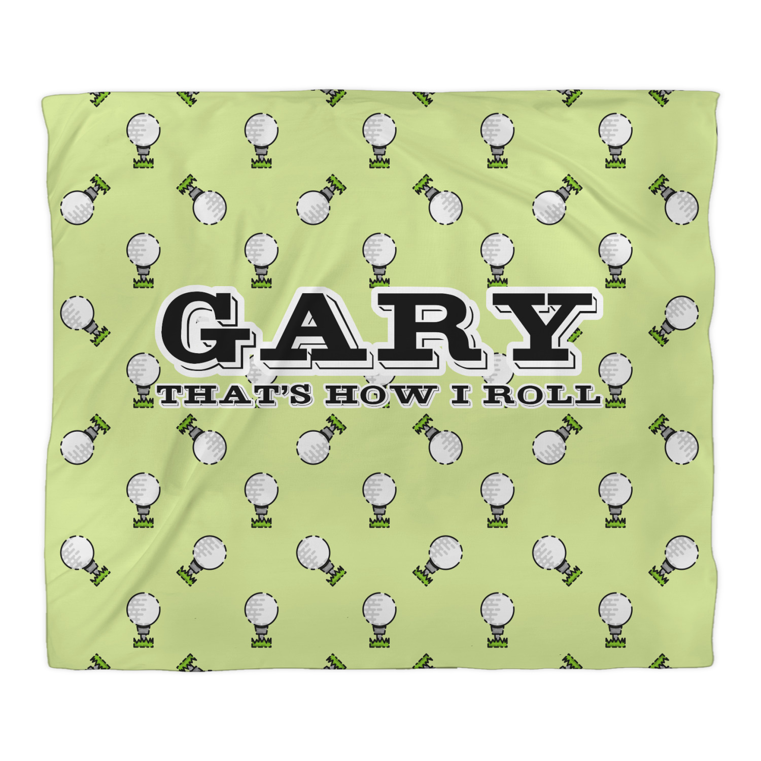 This design has a fun background that has illustrations of golf balls on a tee symmetrically placed to make a fun pattern. The main colors are a light lime green with a little dark green and white. The text is easily changed to whatever you like. The default has a place for a name as well as the phrase "that's how I roll" to get a good laugh out of your buddies. This is a fun design to use on your golfing gear.