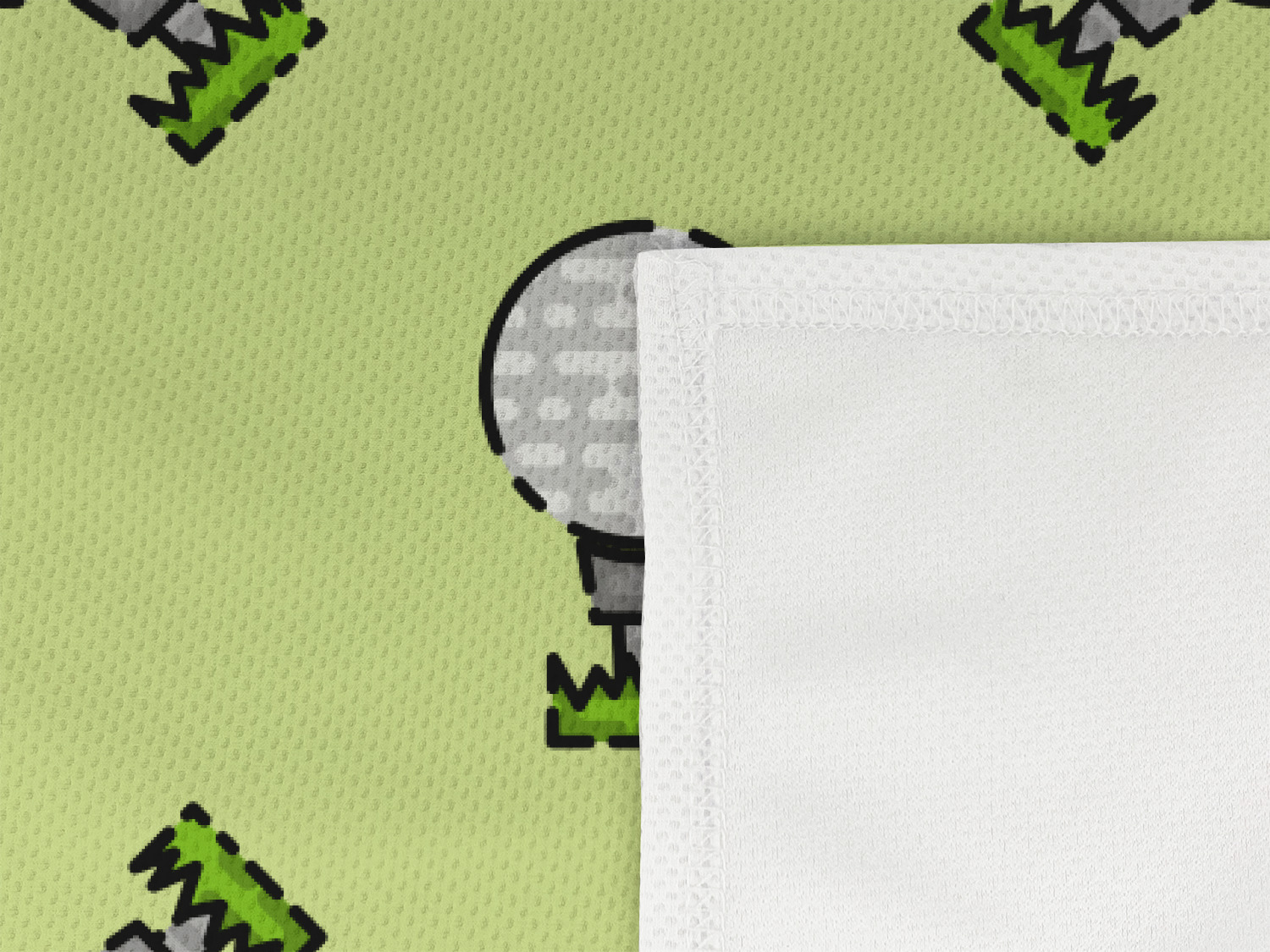 This design has a fun background that has illustrations of golf balls on a tee symmetrically placed to make a fun pattern. The main colors are a light lime green with a little dark green and white. The text is easily changed to whatever you like. The default has a place for a name as well as the phrase "that's how I roll" to get a good laugh out of your buddies. This is a fun design to use on your golfing gear.