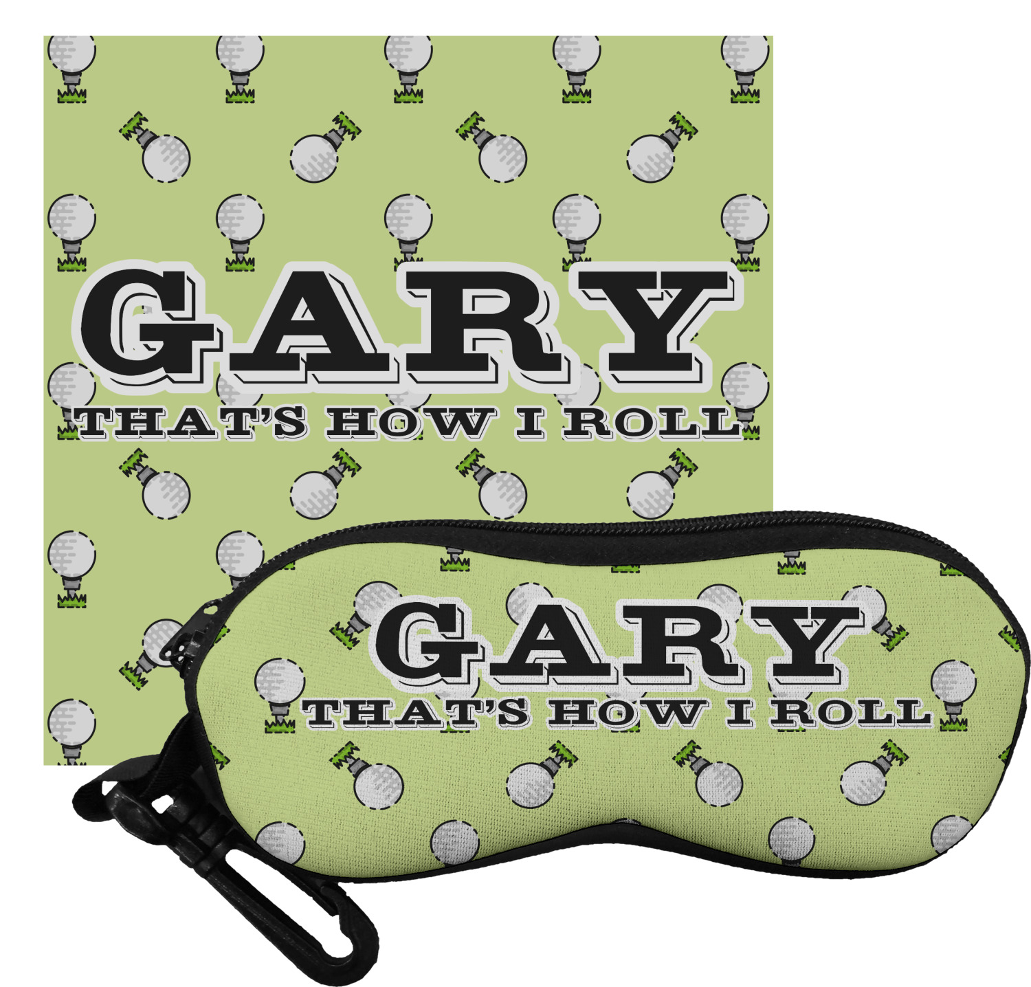 This design has a fun background that has illustrations of golf balls on a tee symmetrically placed to make a fun pattern. The main colors are a light lime green with a little dark green and white. The text is easily changed to whatever you like. The default has a place for a name as well as the phrase "that's how I roll" to get a good laugh out of your buddies. This is a fun design to use on your golfing gear.