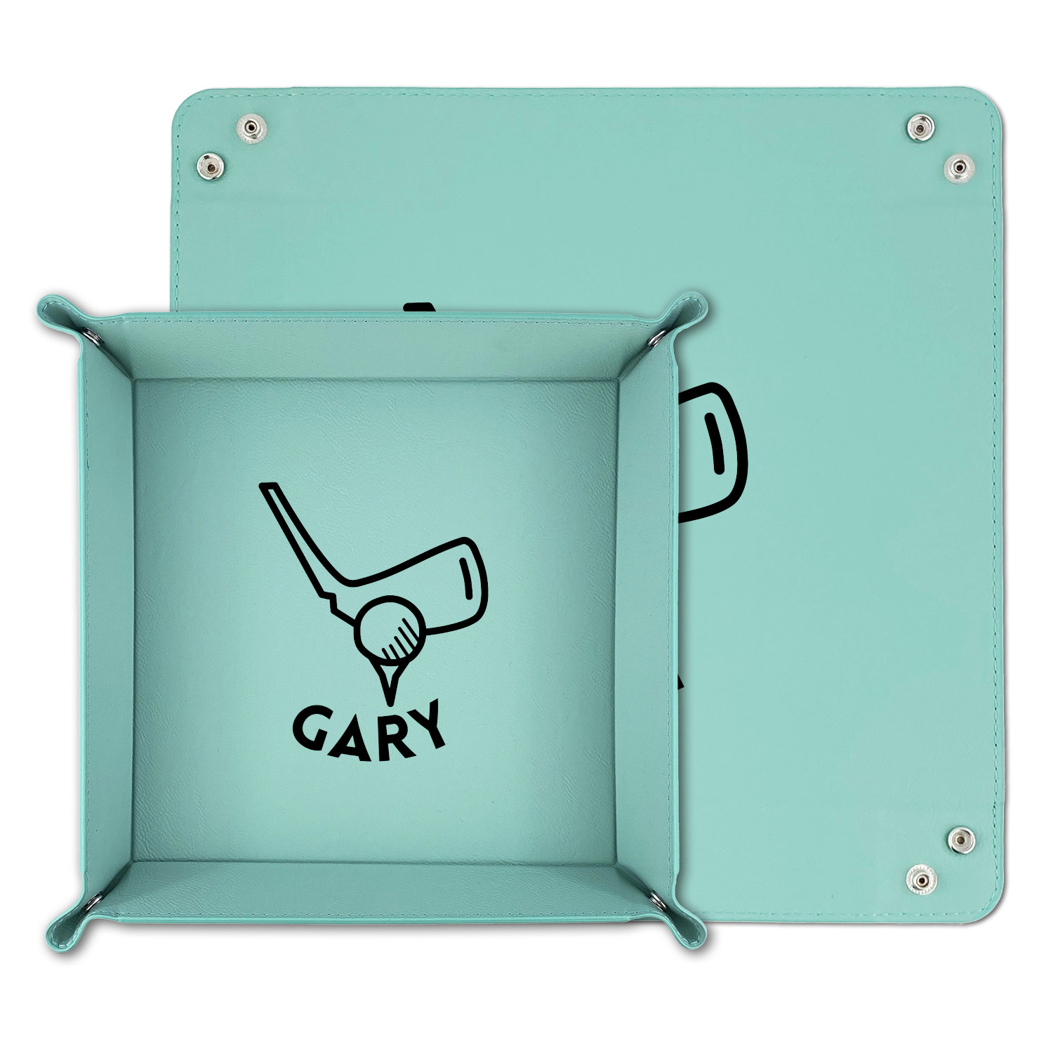 The leatherette wraps the hard board base and sides with flexible hinges to fold the sides up. The corners are secured using silver snaps. The 6in x 6 in tray measures approximately 9.5in x 9.5in when laid flat. The 9in x 9in tray measures approximately 13in x 13in when laid flat.