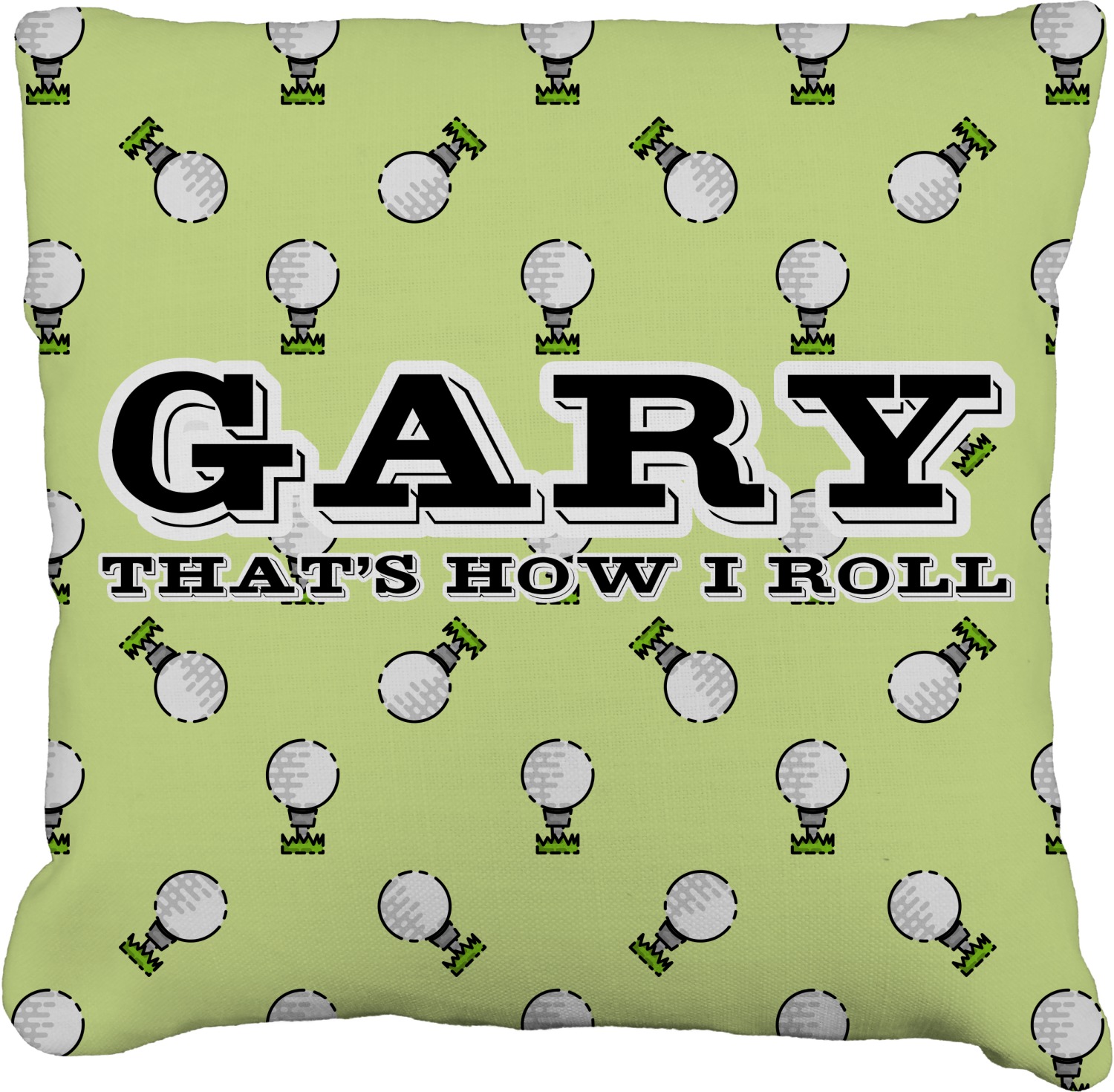 This design has a fun background that has illustrations of golf balls on a tee symmetrically placed to make a fun pattern. The main colors are a light lime green with a little dark green and white. The text is easily changed to whatever you like. The default has a place for a name as well as the phrase "that's how I roll" to get a good laugh out of your buddies. This is a fun design to use on your golfing gear.