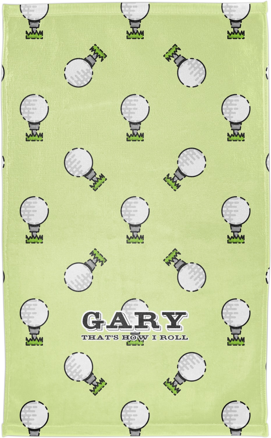 This design has a fun background that has illustrations of golf balls on a tee symmetrically placed to make a fun pattern. The main colors are a light lime green with a little dark green and white. The text is easily changed to whatever you like. The default has a place for a name as well as the phrase "that's how I roll" to get a good laugh out of your buddies. This is a fun design to use on your golfing gear.