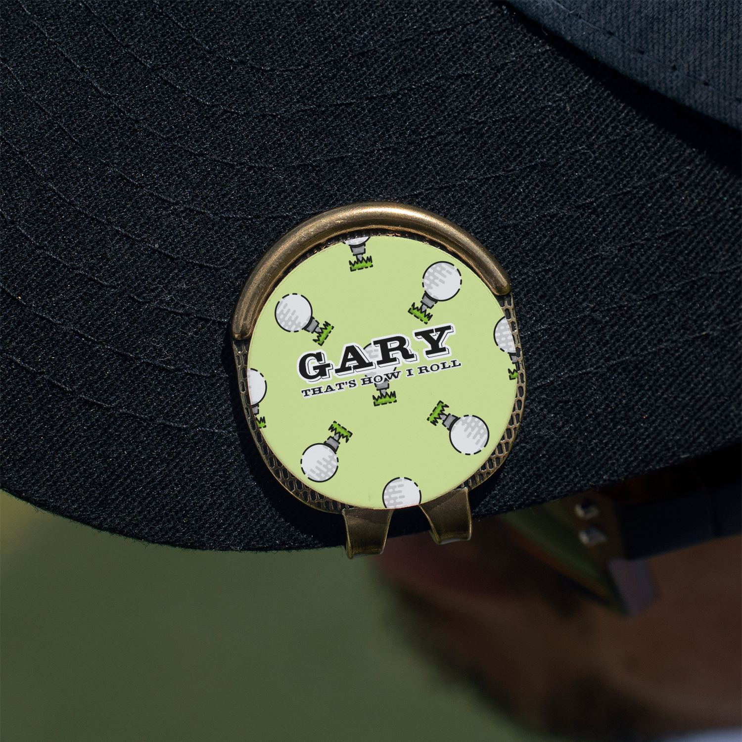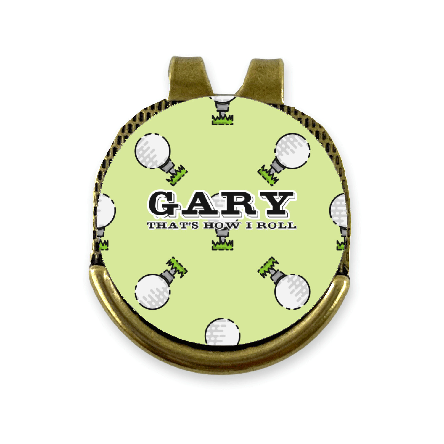 This round shaped little clip is simply 1.25" x 1.5". A clip wraps around to the back of the ball marker holder in order to be able to clip it to the bill of your hat or even your belt. The metal ball marker attaches by a magnet on the clip. Available in stainless steel natural finish or gold finish, you are sure to find one to suit your style. This makes for convenient removal when you need to use it. No more digging in your bag or pockets trying to find it!