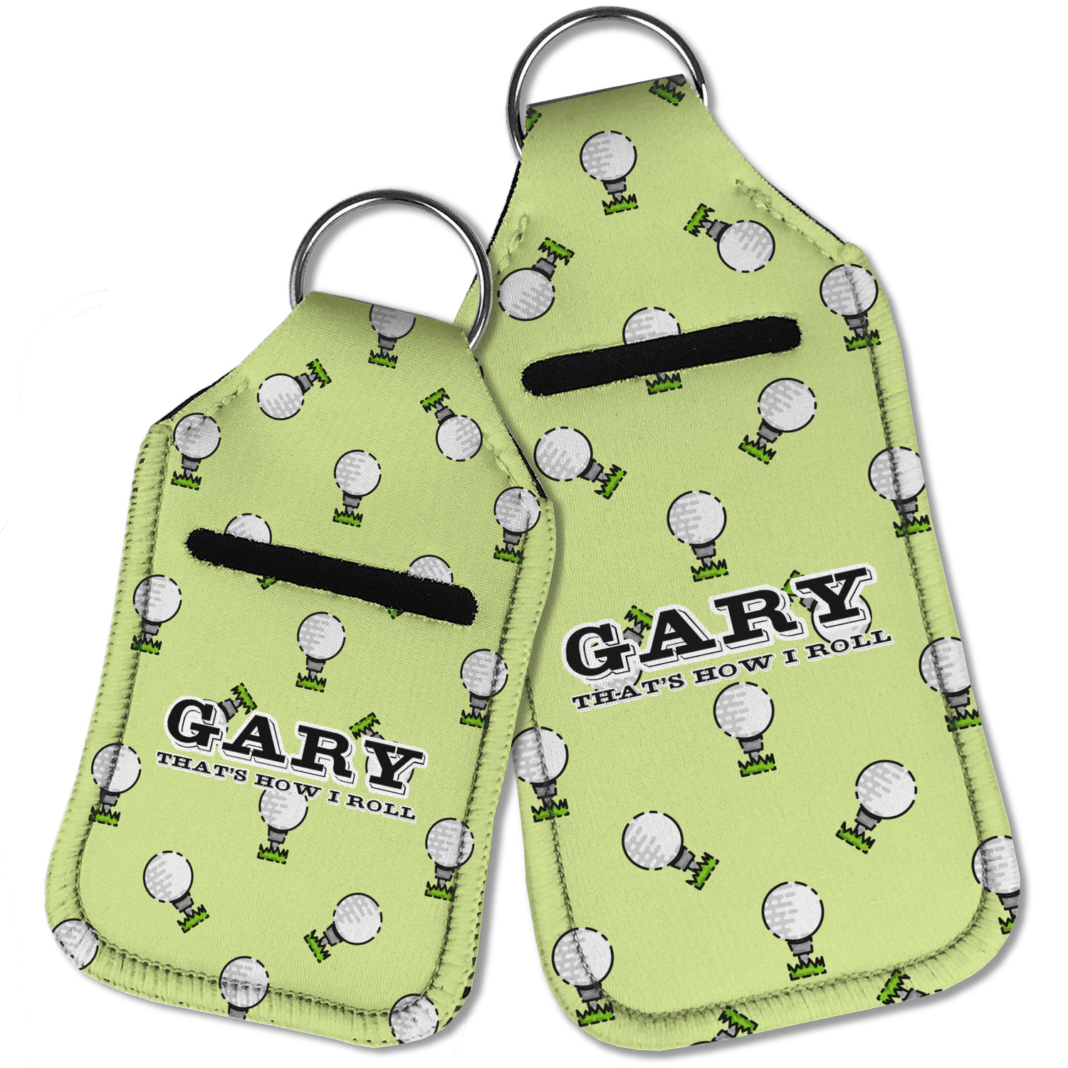 Each hand sanitizer holder comes with its own empty travel-sized, refillable hand sanitizer sure to fit snug in your customized sanitizer case! Our hand sanitizer cases are a durable, yet soft neoprene material sure to last any daily activities or travel agenda. Customize and personalize a hand sanitizer bottle holder with one of our two sizes - small (4.25" x 2.25") or large (5.5" x 2.5"). Each travel sanitizer holder comes with a keyring for attachment on bags, keys, or more!