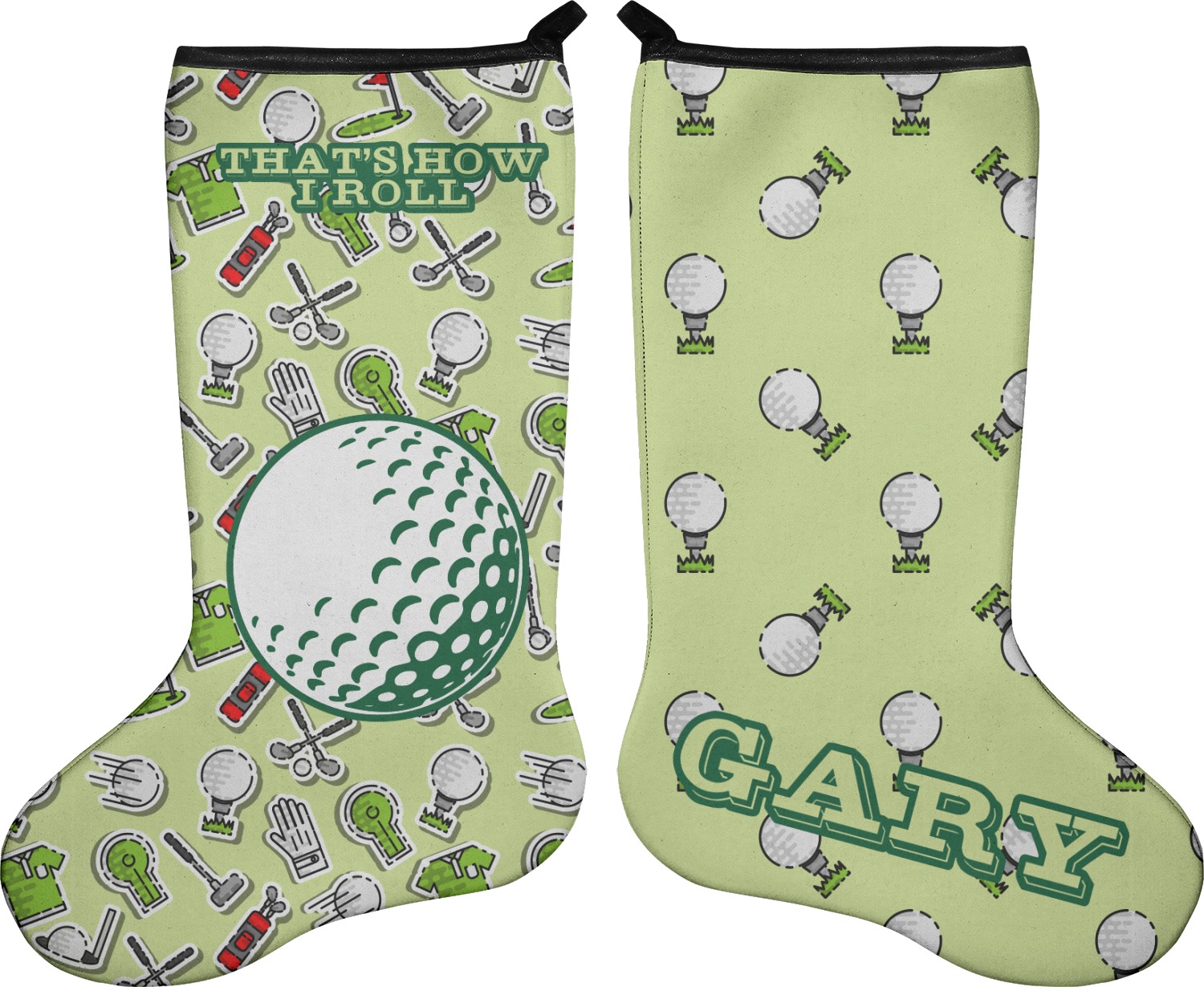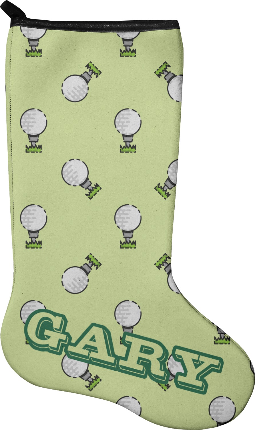 These 17" x 11" stockings are made of neoprene and have a black trim to give them a fantastic finished look. Your very own design is printed right onto the stocking, either single sided with white on the back or double sided where can use the same or different designs / patterns on the front and the back - the choice is yours. At the top of the stocking is a 2" loop for hanging.