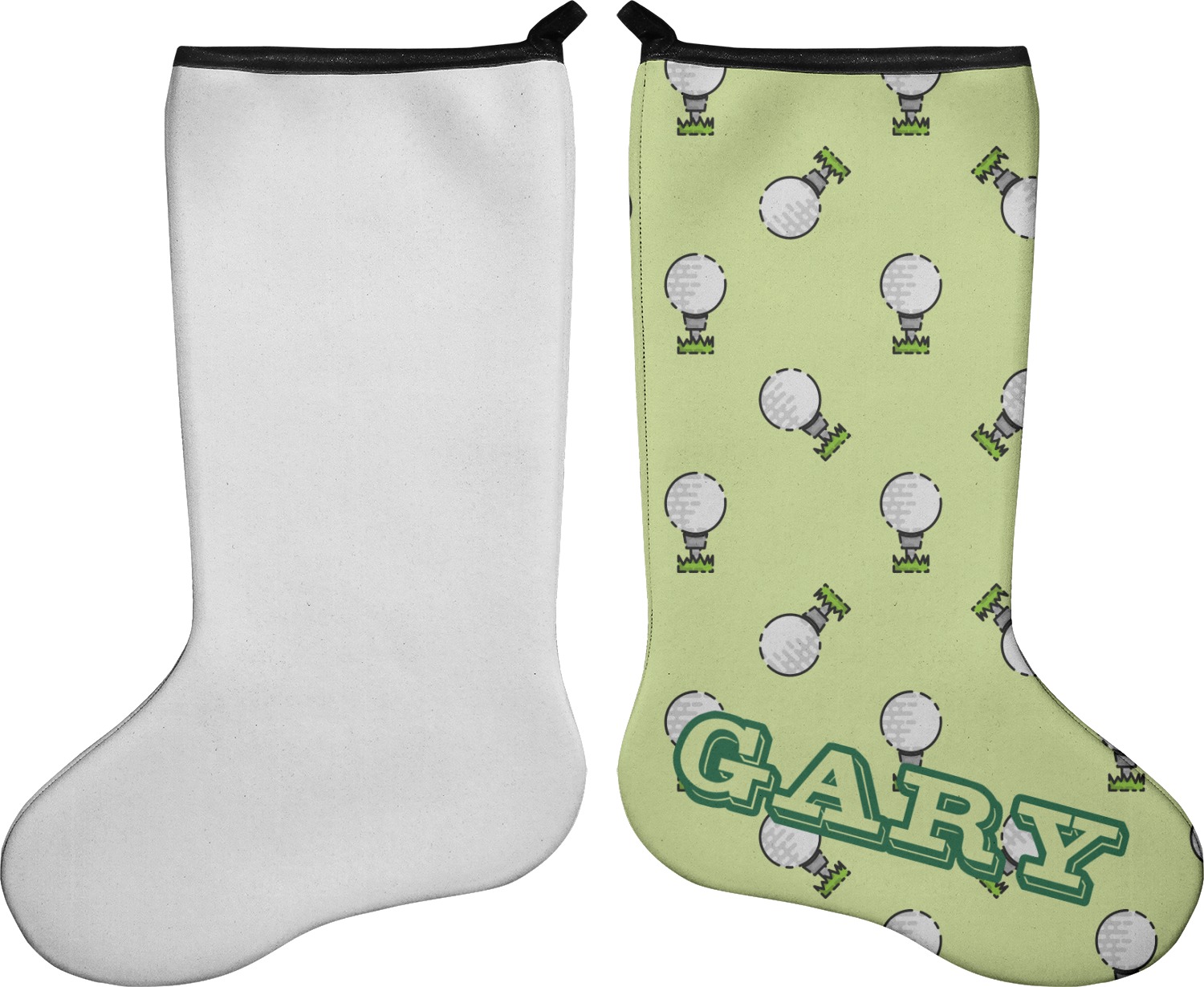 These 17" x 11" stockings are made of neoprene and have a black trim to give them a fantastic finished look. Your very own design is printed right onto the stocking, either single sided with white on the back or double sided where can use the same or different designs / patterns on the front and the back - the choice is yours. At the top of the stocking is a 2" loop for hanging.