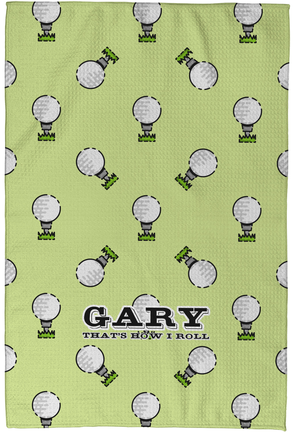 This design has a fun background that has illustrations of golf balls on a tee symmetrically placed to make a fun pattern. The main colors are a light lime green with a little dark green and white. The text is easily changed to whatever you like. The default has a place for a name as well as the phrase "that's how I roll" to get a good laugh out of your buddies. This is a fun design to use on your golfing gear.