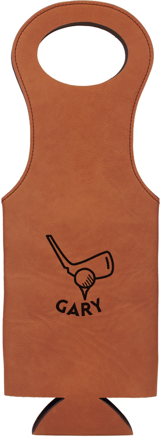 This wine carrier is made from a stunning leatherette, in a cognac-brown color. Strong, black stitching lines the sides of your wine bottle bag and provides extra durability. The interior is lined with a padded, black material to allow for a snug fit once your bottle is placed inside. At the top of this wine gift bag, you'll find two oval shaped handles that elegantly complements the rest of the bag's style. We provide you with the option of laser-engraving the front, or the front and back of your new personalized wine bag!