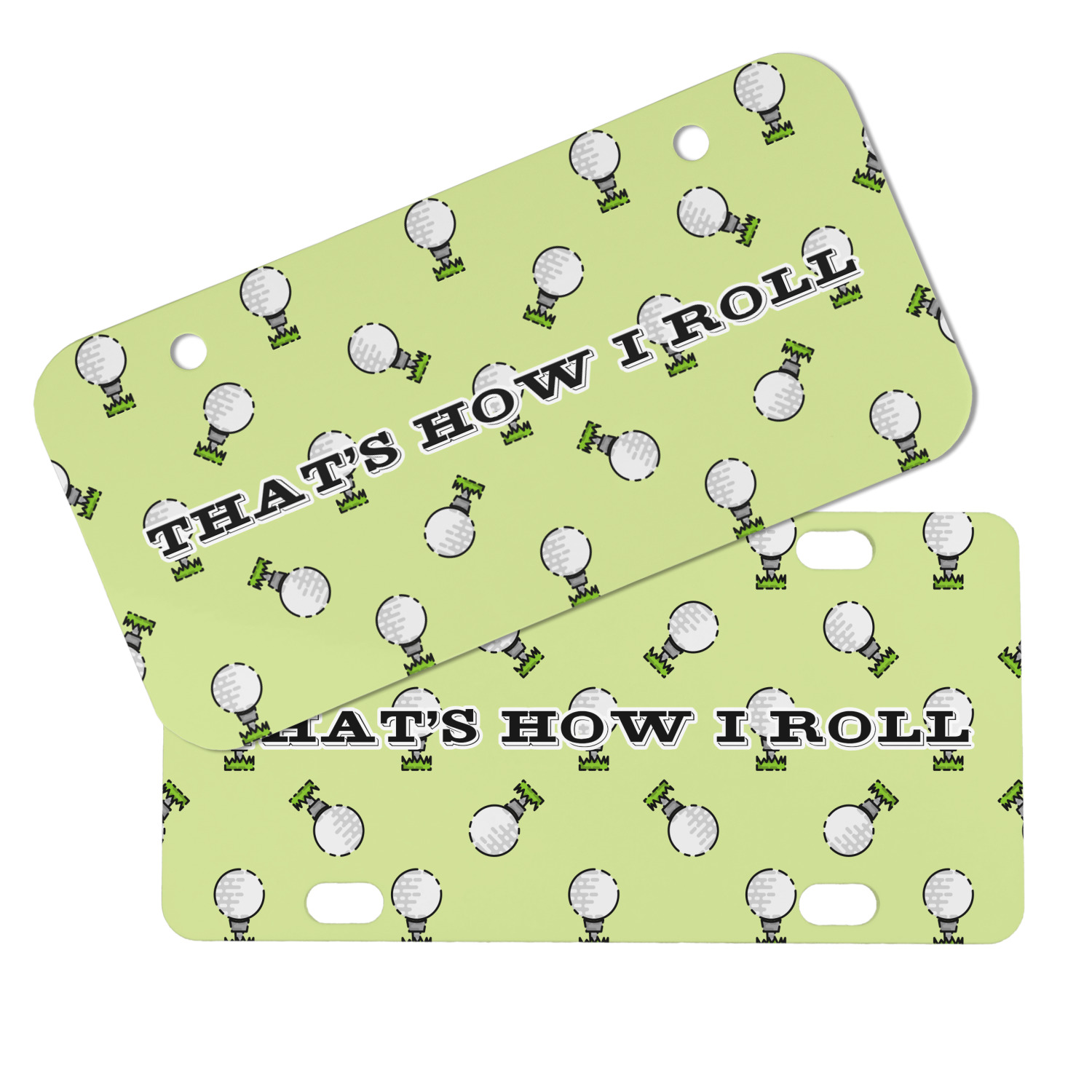 This design has a fun background that has illustrations of golf balls on a tee symmetrically placed to make a fun pattern. The main colors are a light lime green with a little dark green and white. The text is easily changed to whatever you like. The default has a place for a name as well as the phrase "that's how I roll" to get a good laugh out of your buddies. This is a fun design to use on your golfing gear.