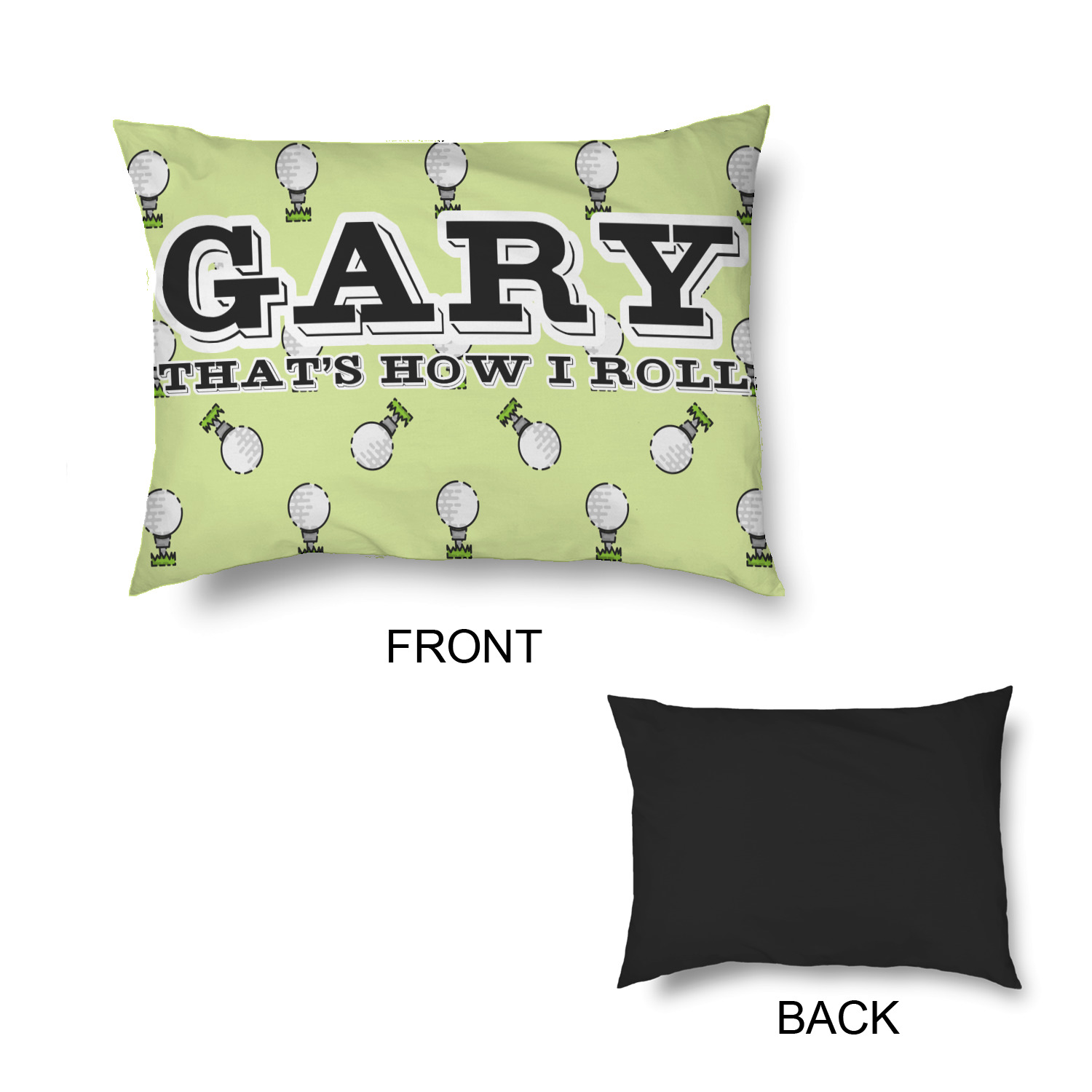 This design has a fun background that has illustrations of golf balls on a tee symmetrically placed to make a fun pattern. The main colors are a light lime green with a little dark green and white. The text is easily changed to whatever you like. The default has a place for a name as well as the phrase "that's how I roll" to get a good laugh out of your buddies. This is a fun design to use on your golfing gear.