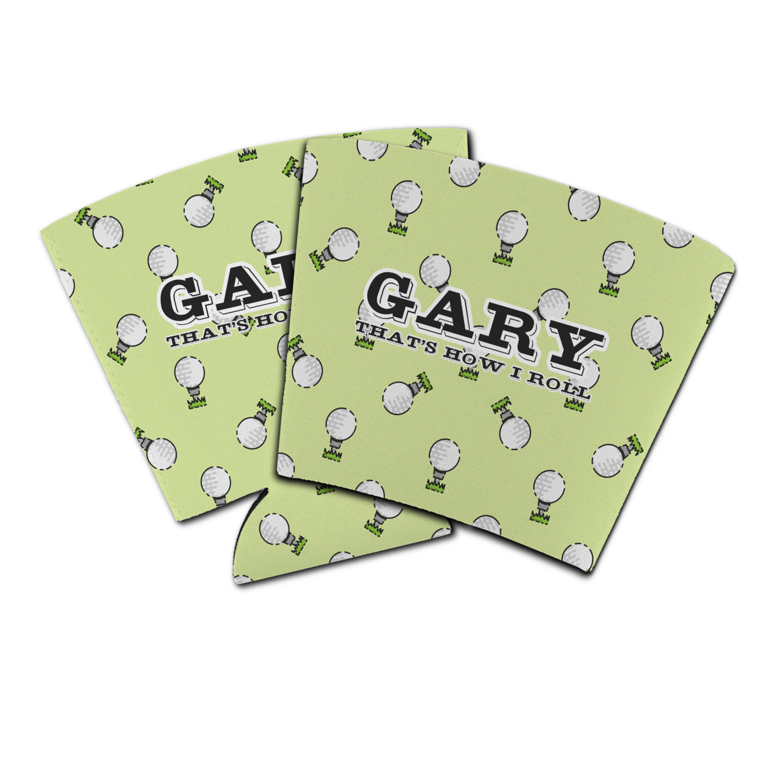 This design has a fun background that has illustrations of golf balls on a tee symmetrically placed to make a fun pattern. The main colors are a light lime green with a little dark green and white. The text is easily changed to whatever you like. The default has a place for a name as well as the phrase "that's how I roll" to get a good laugh out of your buddies. This is a fun design to use on your golfing gear.