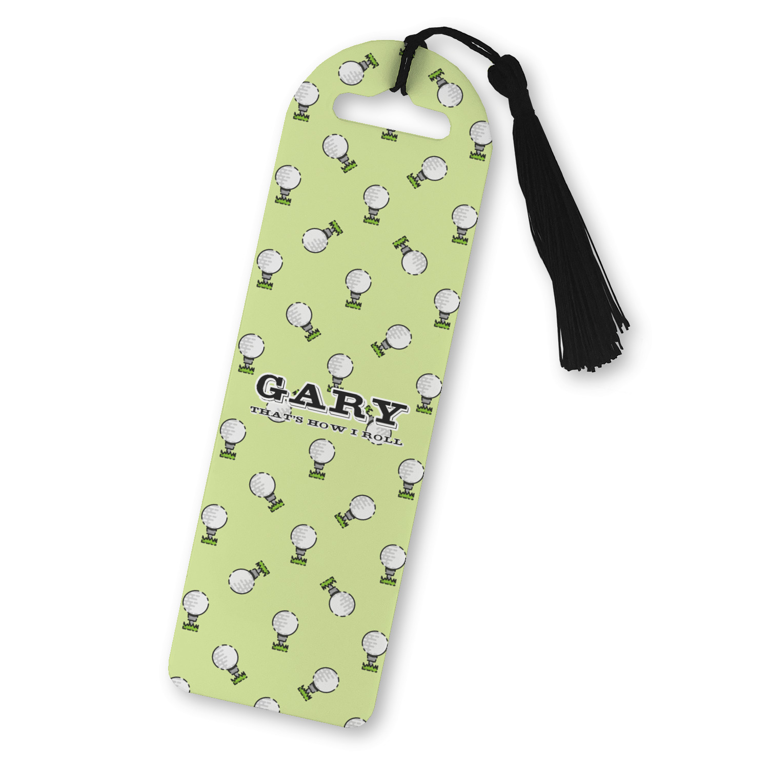 This design has a fun background that has illustrations of golf balls on a tee symmetrically placed to make a fun pattern. The main colors are a light lime green with a little dark green and white. The text is easily changed to whatever you like. The default has a place for a name as well as the phrase "that's how I roll" to get a good laugh out of your buddies. This is a fun design to use on your golfing gear.