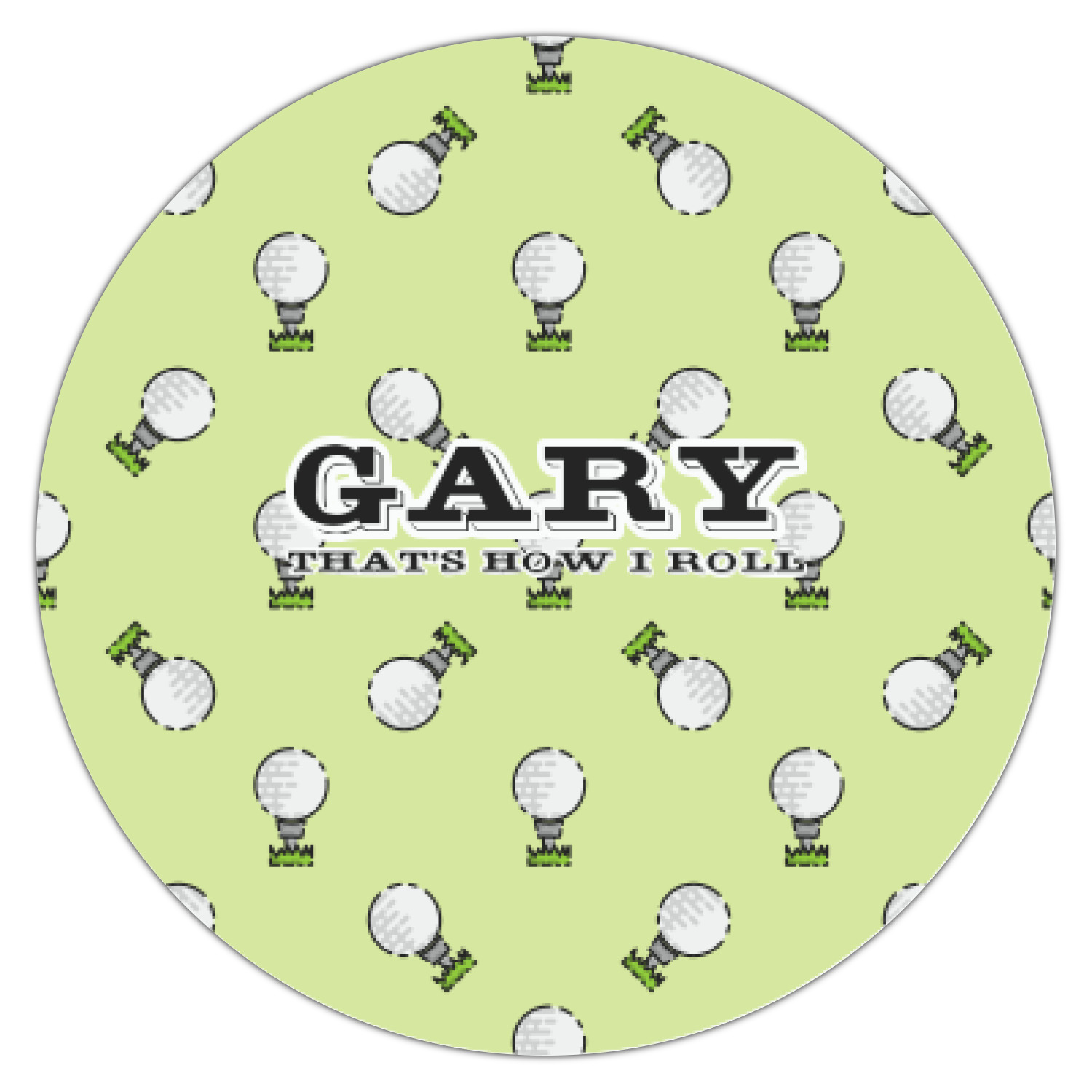 This design has a fun background that has illustrations of golf balls on a tee symmetrically placed to make a fun pattern. The main colors are a light lime green with a little dark green and white. The text is easily changed to whatever you like. The default has a place for a name as well as the phrase "that's how I roll" to get a good laugh out of your buddies. This is a fun design to use on your golfing gear.