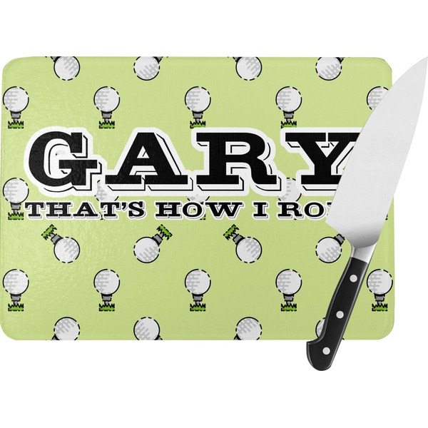 This design has a fun background that has illustrations of golf balls on a tee symmetrically placed to make a fun pattern. The main colors are a light lime green with a little dark green and white. The text is easily changed to whatever you like. The default has a place for a name as well as the phrase "that's how I roll" to get a good laugh out of your buddies. This is a fun design to use on your golfing gear.