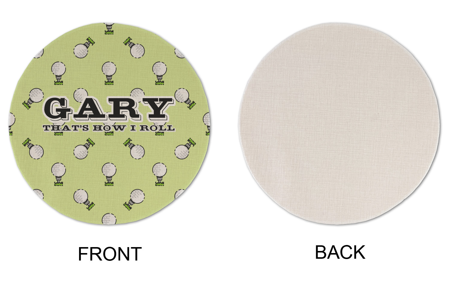 This design has a fun background that has illustrations of golf balls on a tee symmetrically placed to make a fun pattern. The main colors are a light lime green with a little dark green and white. The text is easily changed to whatever you like. The default has a place for a name as well as the phrase "that's how I roll" to get a good laugh out of your buddies. This is a fun design to use on your golfing gear.