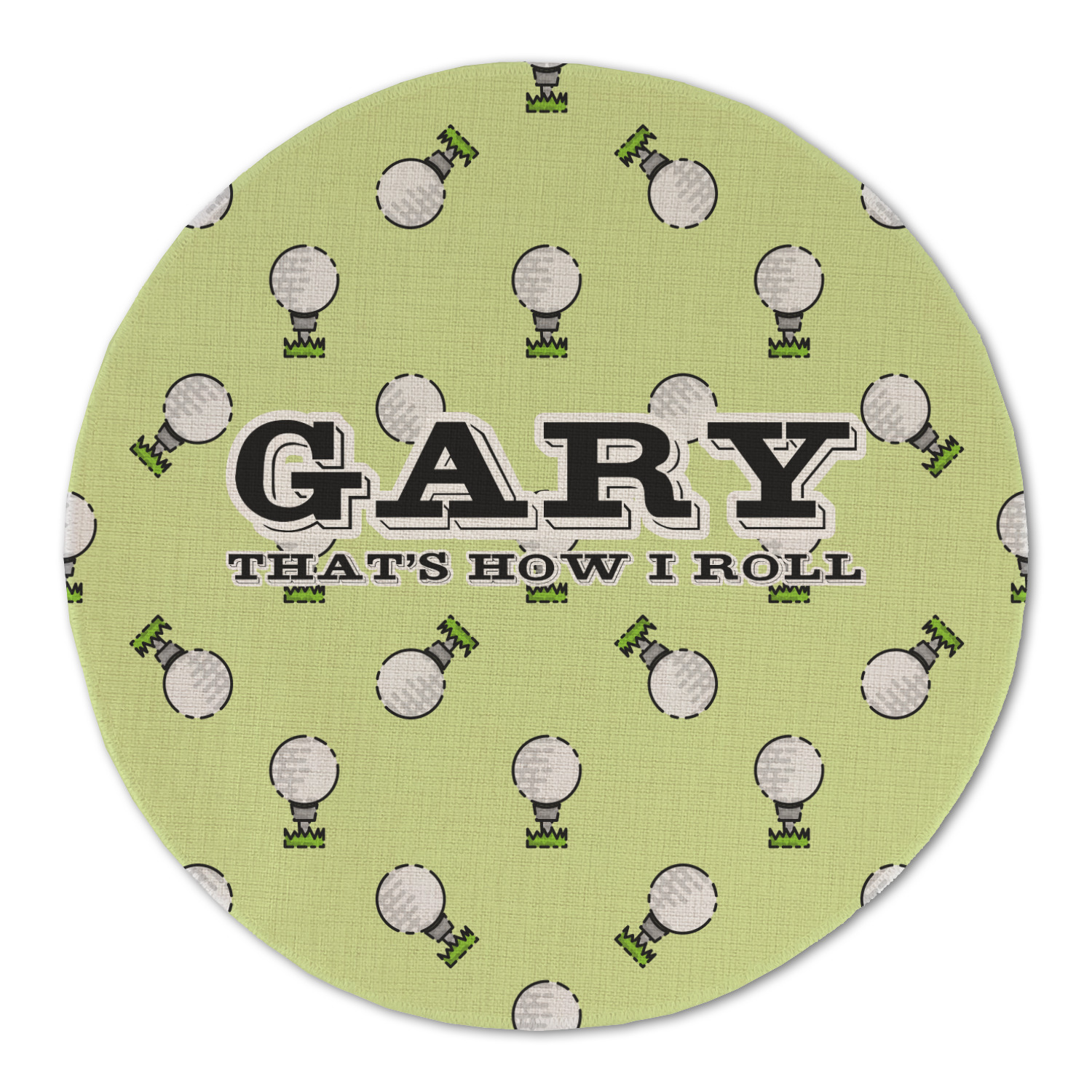 This design has a fun background that has illustrations of golf balls on a tee symmetrically placed to make a fun pattern. The main colors are a light lime green with a little dark green and white. The text is easily changed to whatever you like. The default has a place for a name as well as the phrase "that's how I roll" to get a good laugh out of your buddies. This is a fun design to use on your golfing gear.