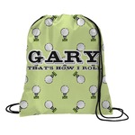 This design has a fun background that has illustrations of golf balls on a tee symmetrically placed to make a fun pattern. The main colors are a light lime green with a little dark green and white. The text is easily changed to whatever you like. The default has a place for a name as well as the phrase "that's how I roll" to get a good laugh out of your buddies. This is a fun design to use on your golfing gear.