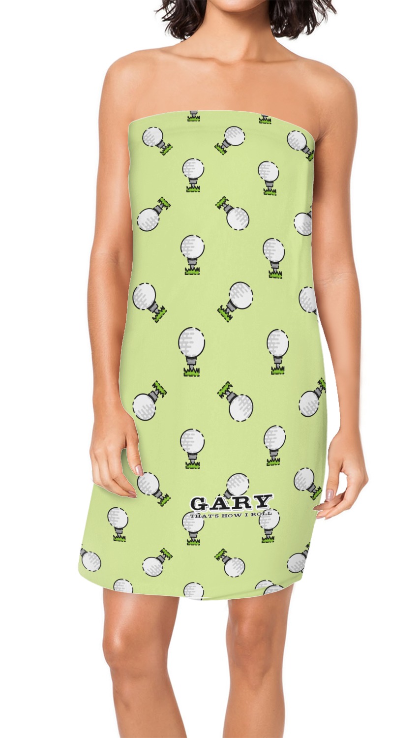 This design has a fun background that has illustrations of golf balls on a tee symmetrically placed to make a fun pattern. The main colors are a light lime green with a little dark green and white. The text is easily changed to whatever you like. The default has a place for a name as well as the phrase "that's how I roll" to get a good laugh out of your buddies. This is a fun design to use on your golfing gear.