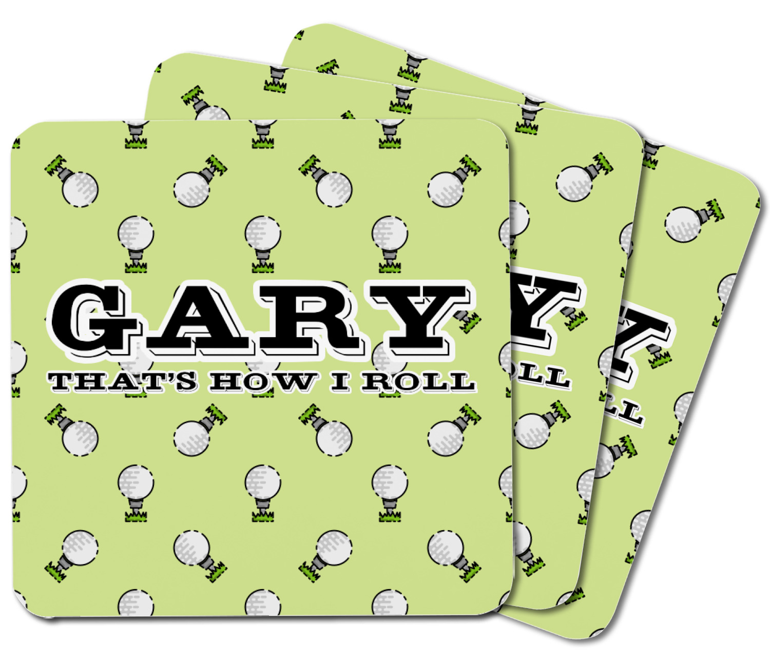 This design has a fun background that has illustrations of golf balls on a tee symmetrically placed to make a fun pattern. The main colors are a light lime green with a little dark green and white. The text is easily changed to whatever you like. The default has a place for a name as well as the phrase "that's how I roll" to get a good laugh out of your buddies. This is a fun design to use on your golfing gear.