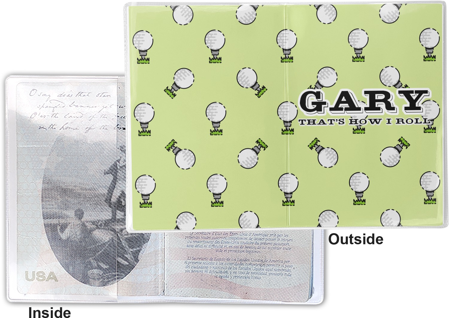 This cover is made of a sturdy clear vinyl with a personalized vinyl insert inside. There is a large and a small pocket on either side to hold the covers of your passport easily and firmly. The passport holder is approximately 7.5" x 5.25", the perfect size to snugly fit your passport. This slim cover is the perfect way to protect your passport without being one more bulky item you have to carry.