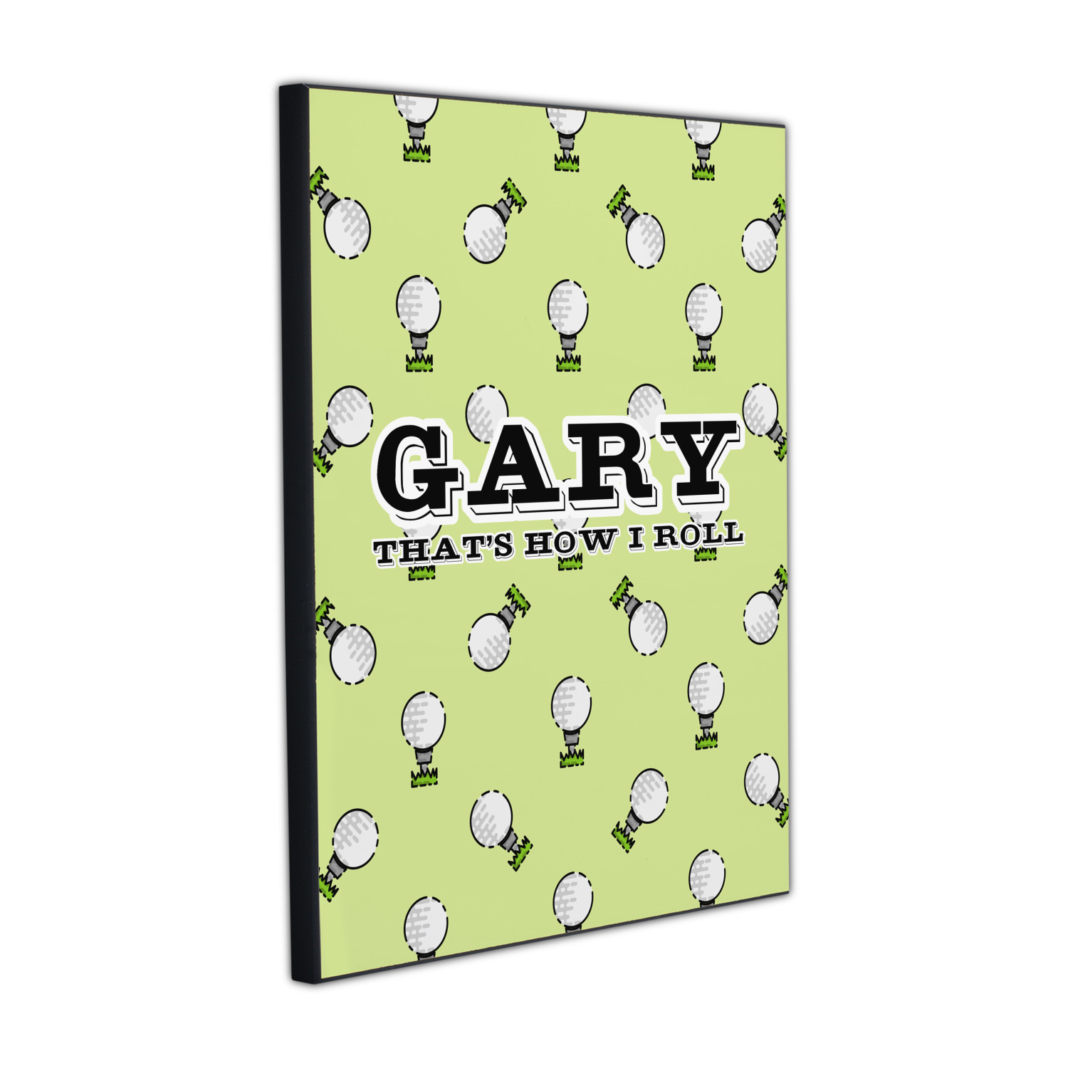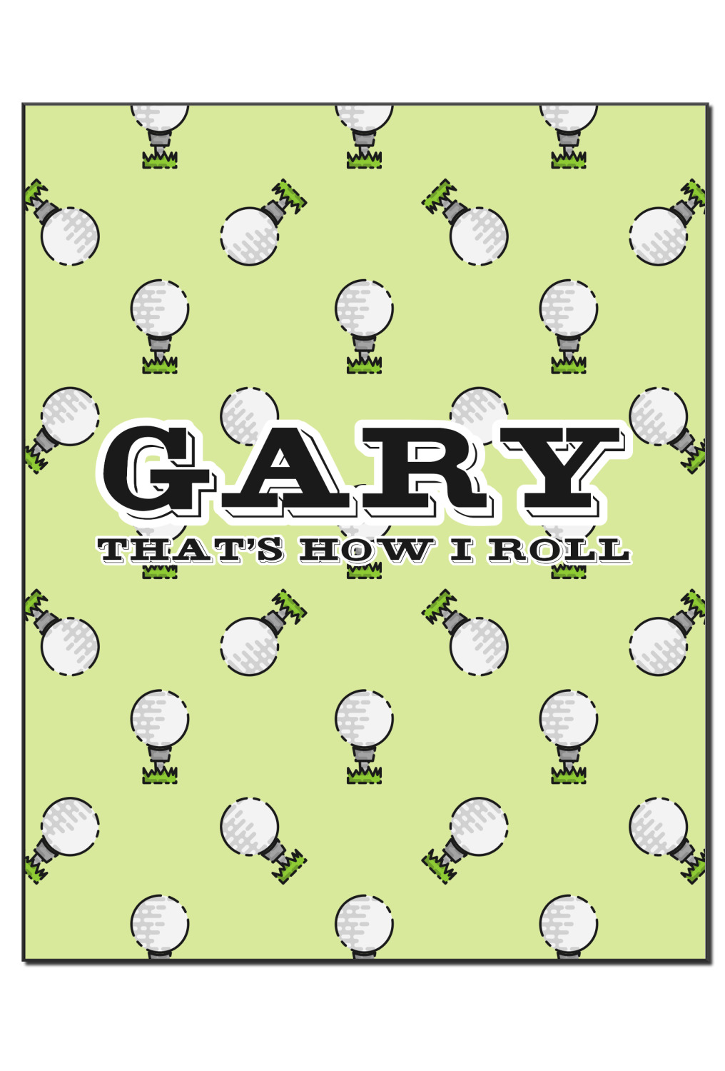 This design has a fun background that has illustrations of golf balls on a tee symmetrically placed to make a fun pattern. The main colors are a light lime green with a little dark green and white. The text is easily changed to whatever you like. The default has a place for a name as well as the phrase "that's how I roll" to get a good laugh out of your buddies. This is a fun design to use on your golfing gear.