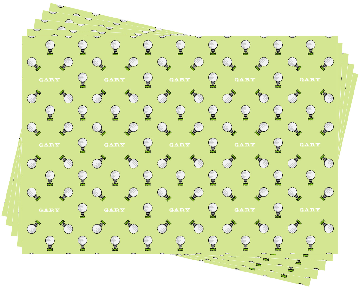 This design has a fun background that has illustrations of golf balls on a tee symmetrically placed to make a fun pattern. The main colors are a light lime green with a little dark green and white. The text is easily changed to whatever you like. The default has a place for a name as well as the phrase "that's how I roll" to get a good laugh out of your buddies. This is a fun design to use on your golfing gear.