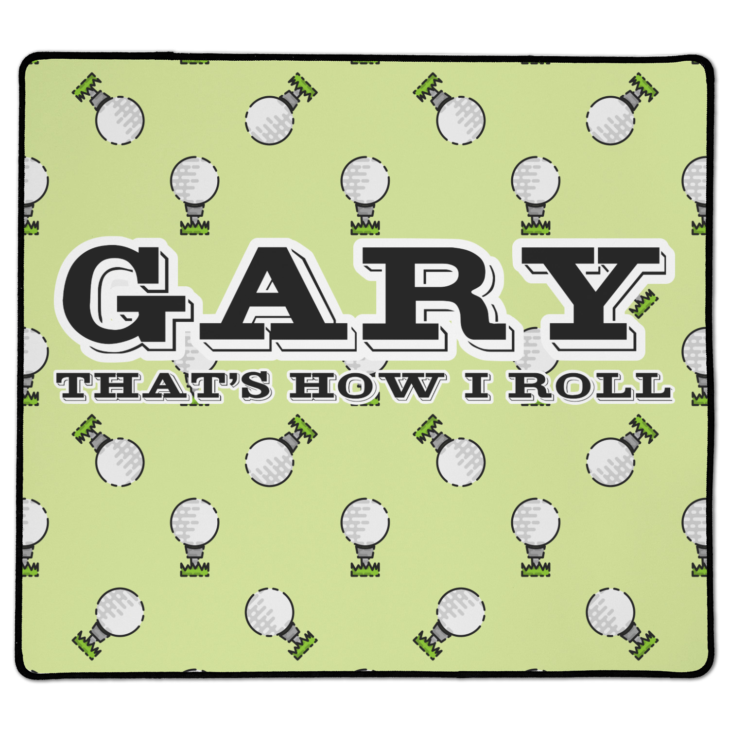 This design has a fun background that has illustrations of golf balls on a tee symmetrically placed to make a fun pattern. The main colors are a light lime green with a little dark green and white. The text is easily changed to whatever you like. The default has a place for a name as well as the phrase "that's how I roll" to get a good laugh out of your buddies. This is a fun design to use on your golfing gear.