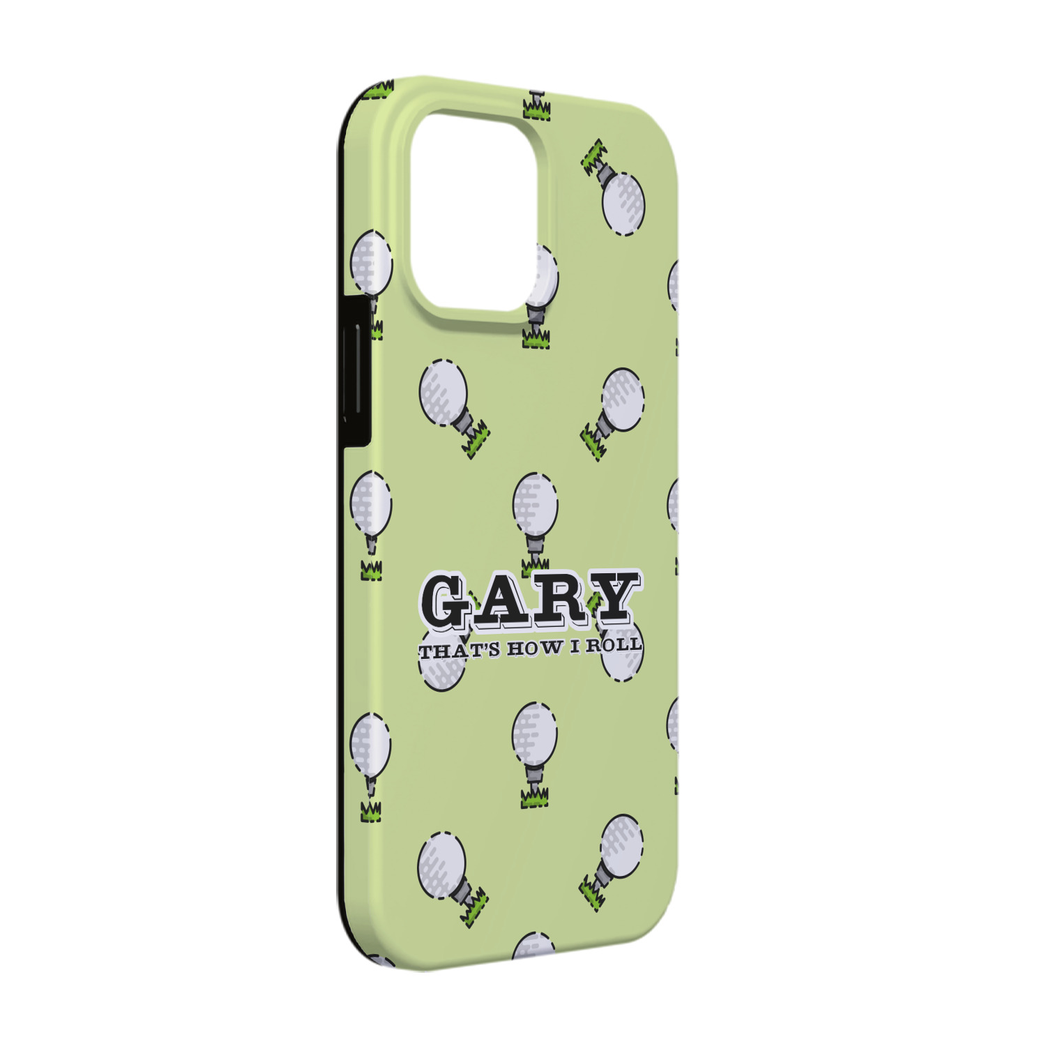 This design has a fun background that has illustrations of golf balls on a tee symmetrically placed to make a fun pattern. The main colors are a light lime green with a little dark green and white. The text is easily changed to whatever you like. The default has a place for a name as well as the phrase "that's how I roll" to get a good laugh out of your buddies. This is a fun design to use on your golfing gear.