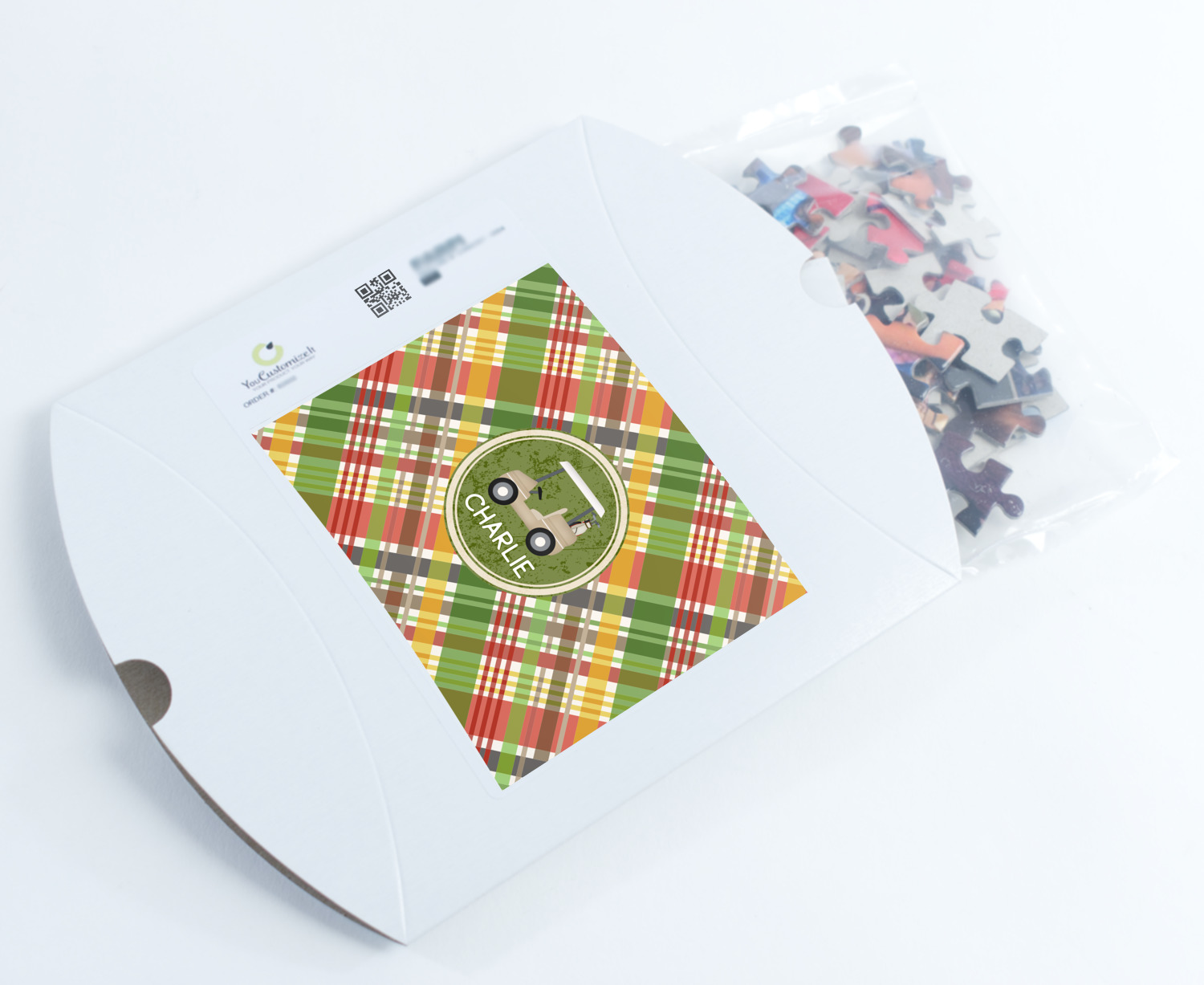 You can also upload your logo or art that you or your kids drew. To create more challenging jigsaw puzzles, you can create a pattern from with your logo or artwork. You can also add other elements such as text or personalization.