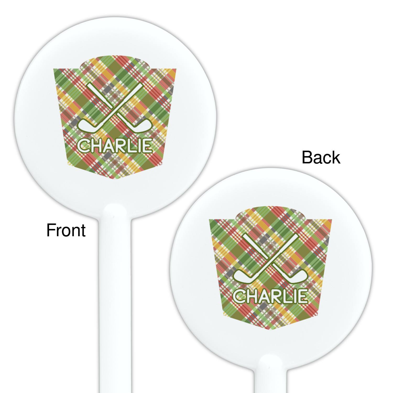 Golf Cart Designs for 5.5" Round Plastic Stir Sticks - White - Double-Sided