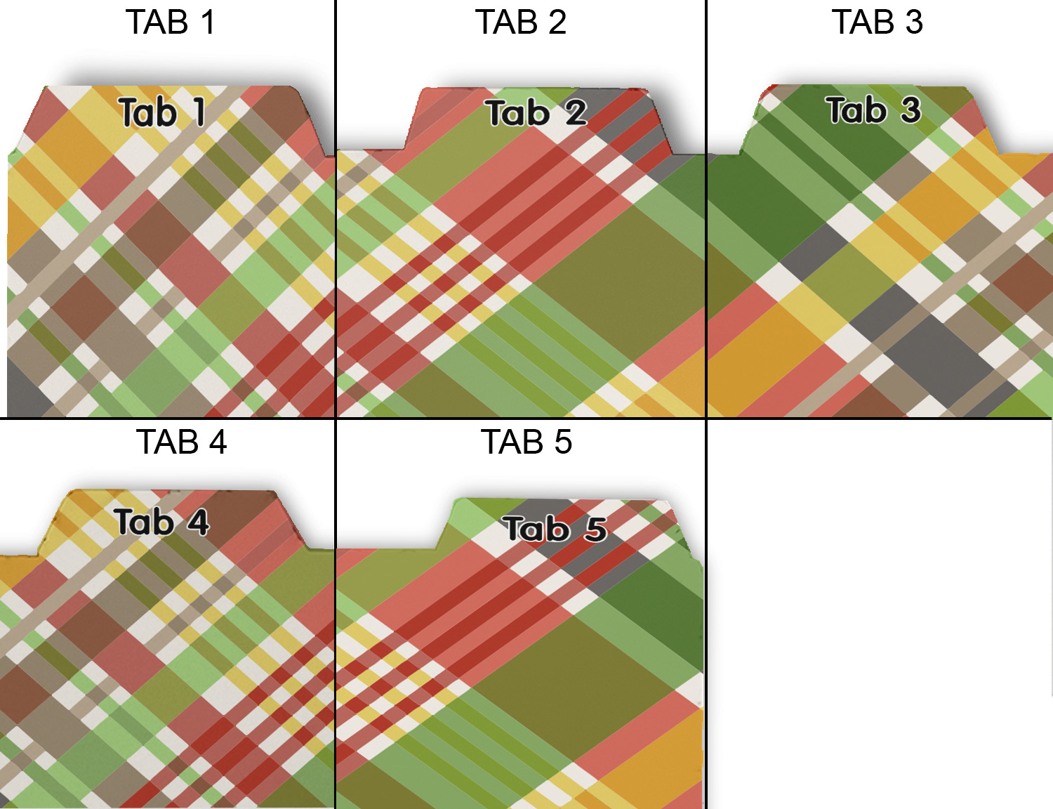 Whether you use binders at school or at work, we have designs to suit all of them. Available in 5 or 6 tab sets, you are sure to find a set to suit your needs. The back of each one is white and can be used to take notes, write vital information on, etc.