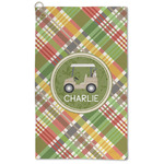 The background in this design is a diagonal plaid that has muted green, red, cream, and yellow. In the center is a fun vintage texture frame with a golf cart illustration and your personalization underneath. The coordinating design has a fun golf ball pattern with a victorious laurel wreath framing your personalization. This is the perfect design for any guy who loves golf.