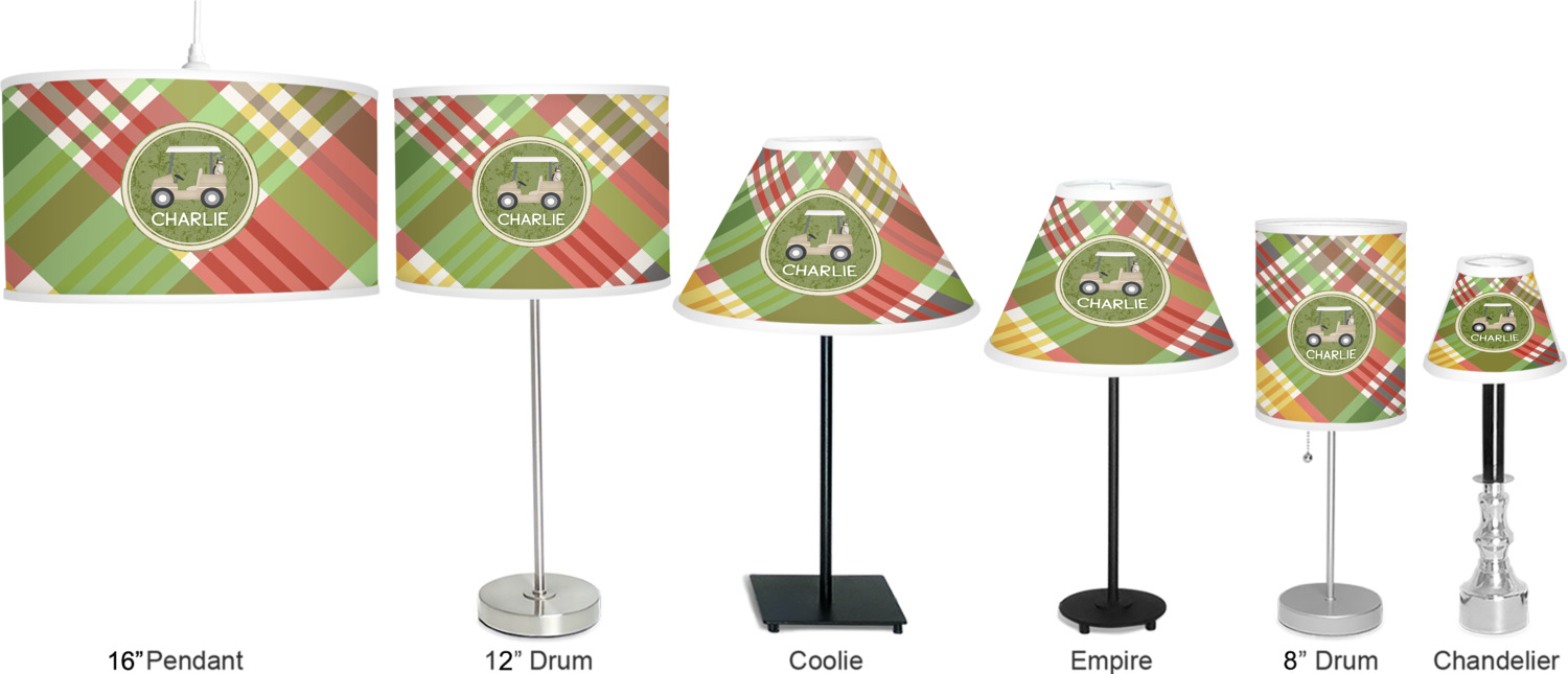 The background in this design is a diagonal plaid that has muted green, red, cream, and yellow. In the center is a fun vintage texture frame with a golf cart illustration and your personalization underneath. The coordinating design has a fun golf ball pattern with a victorious laurel wreath framing your personalization. This is the perfect design for any guy who loves golf.