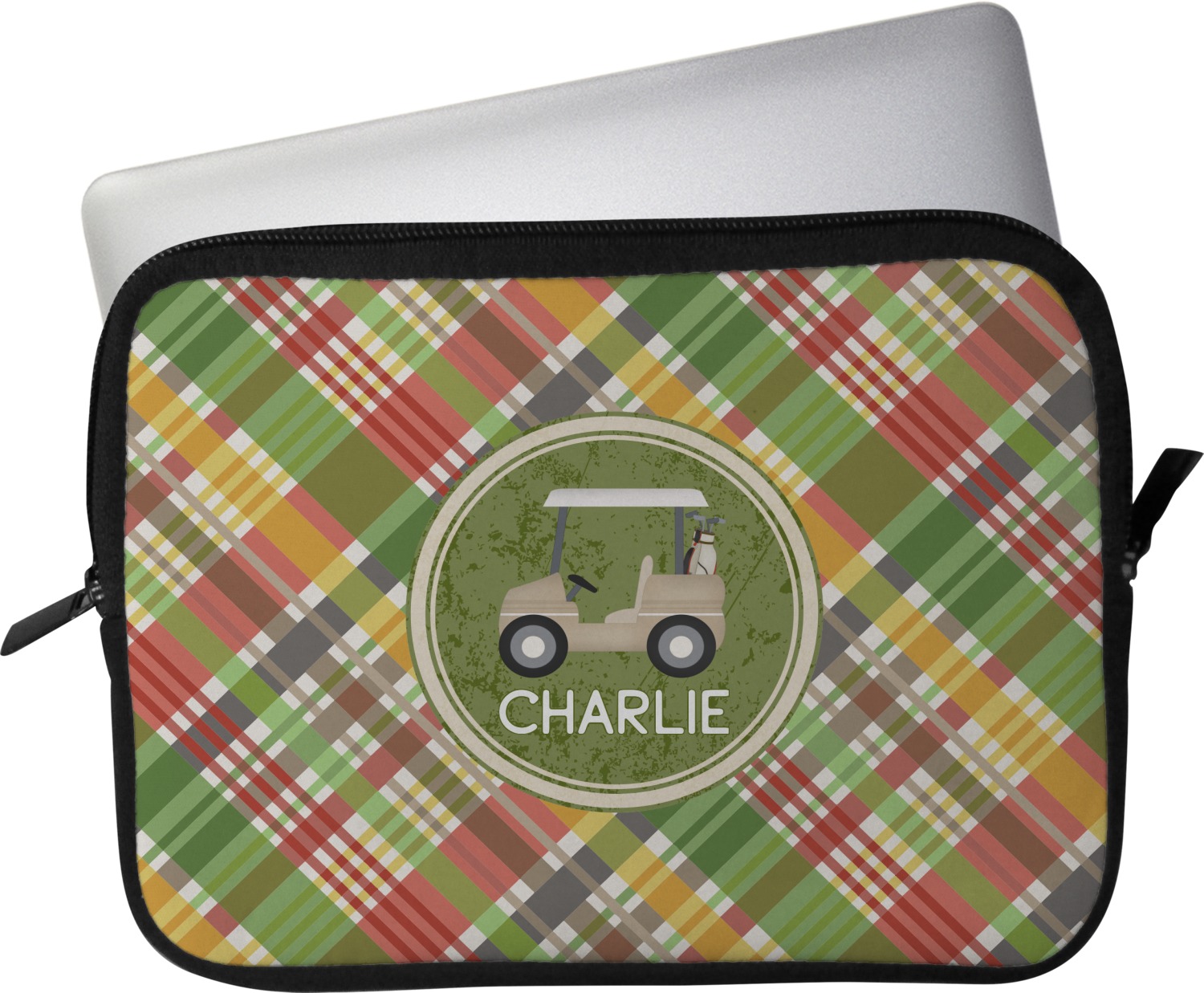 These laptop covers are built from a water-resistant, cushioned neoprene. We display your personalized design on the front of this computer sleeve, while the other sides are simply the black color of the neoprene fabric. A zipper lines the top half of this case, for direct access to your device. For added protection, the interior of this neoprene laptop sleeve is lined with a padded, minky-like material.