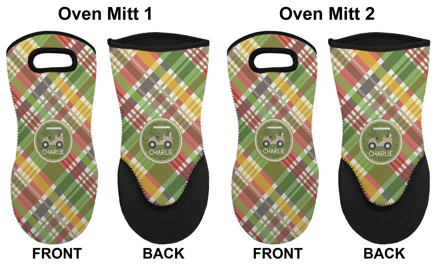 Golf Cart Designs for Neoprene Oven Mitts - Set of 2