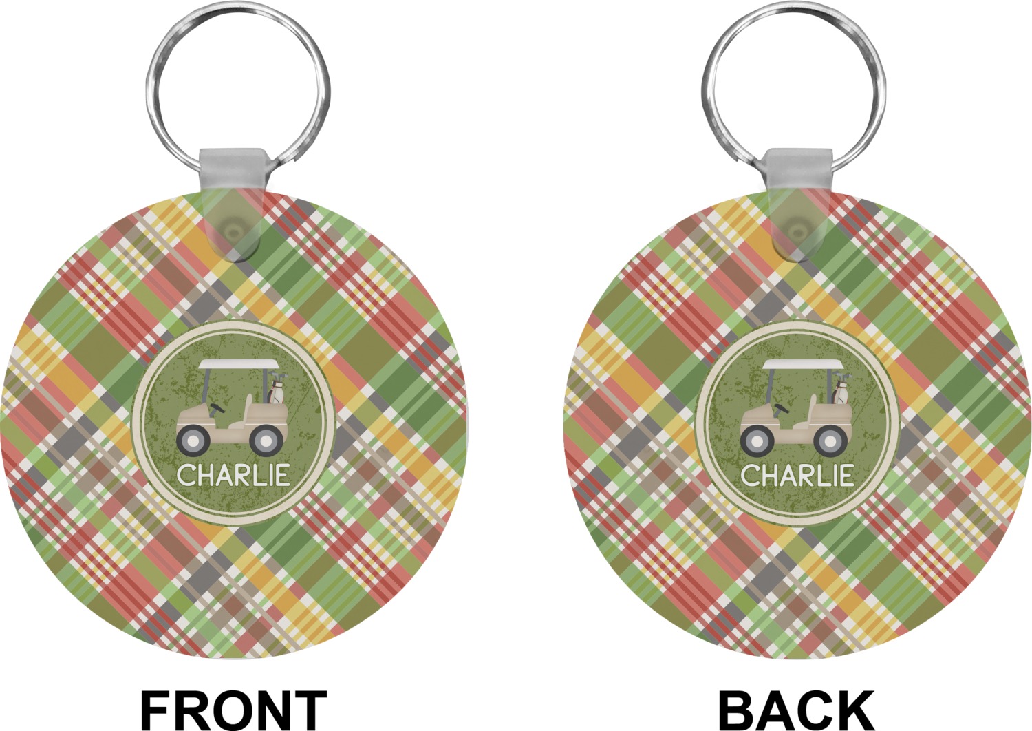 Our personalized keychains attach to the included metal, split key ring with a plastic, removable snap. Since a metal ring is included with your purchase, you have the liberty to keep your keys together on the ring, with or without your unique keychain. We offer this keychain in three different shapes: circle, heart, or diamond. We print your personalized design(s) on both sides of the key chain, and the surface has a glossy, reflective finish that only emphasizes your design. Each keychain is approximately 2.25 by 2.25 inches.