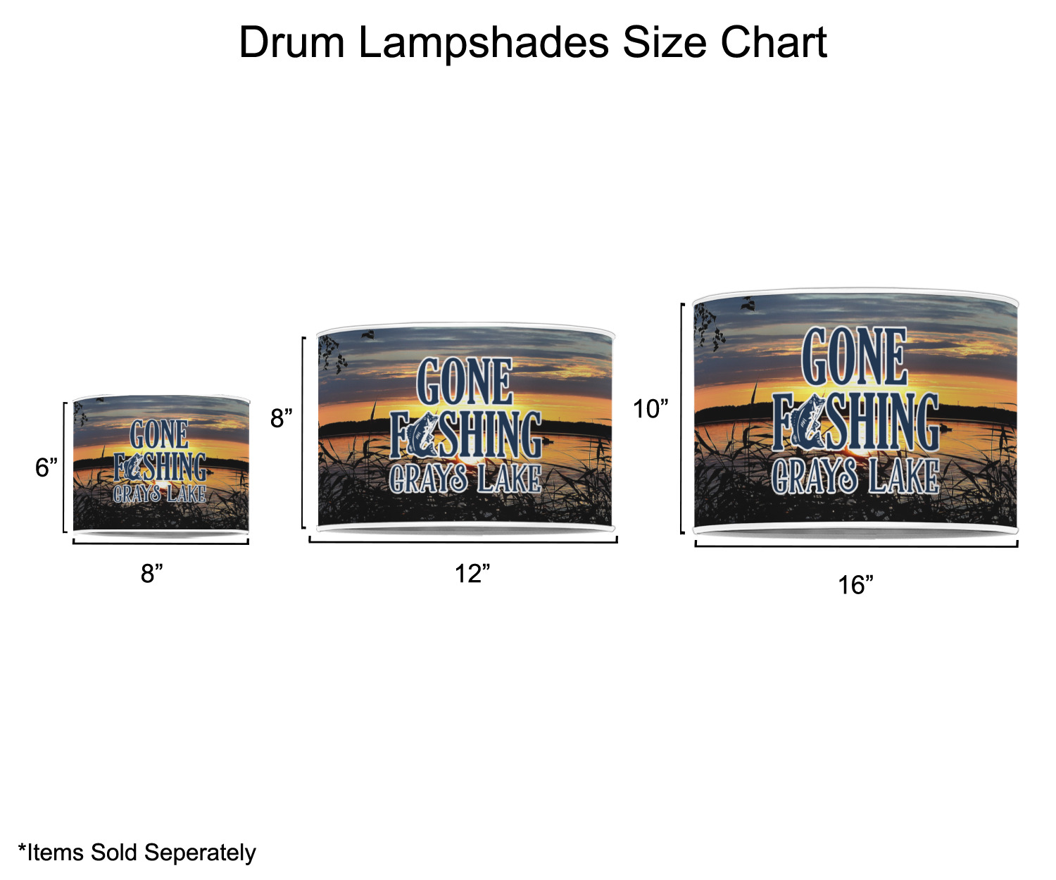 Our customized lamp shades also come in 3 different sizes: 8", 12" and 16", measuring at 8" in diameter by 6" tall, 12" in diameter by 8" tall, and 16" in diameter by 10" tall, respectively.