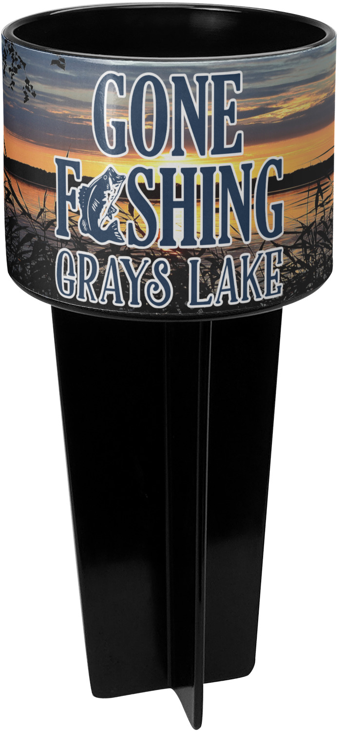 This cup holder has a large stake at its bottom that anchors it to the sand or ground below, while the cup holder rests above the stake. The entire drink holder is made of durable plastic and displays your customization around the cup holder portion. We sell these personalized beach spikers in two different colors: black and white.