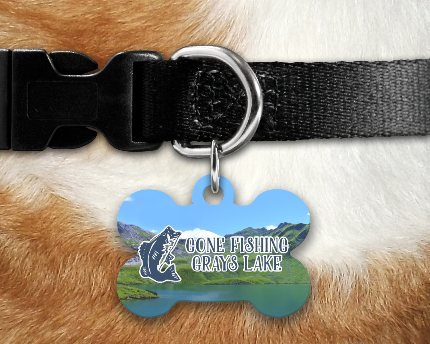 Shaped like a bone and made from aluminum, these tags are available in 2 different sizes.